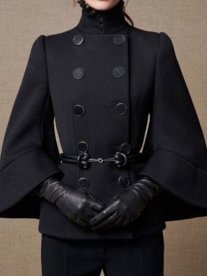 Flared Buttoned Solid Color High Neck Jackets&Coats Outerwear Woolen Coat