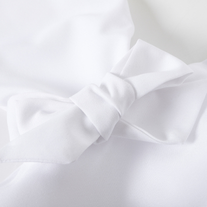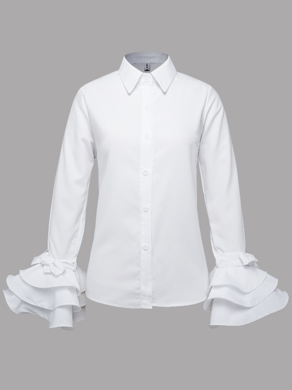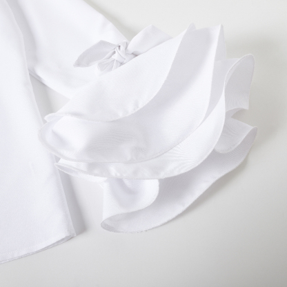 Flared Sleeves Bow-Embellished Falbala Solid Color Lapel Blouses&Shirts Tops