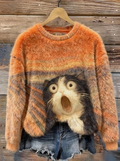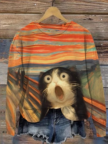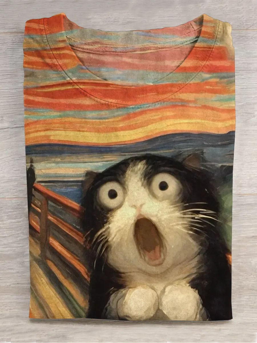 Fun Cat Art Print Casual Cotton Short Sleeve T-shirt