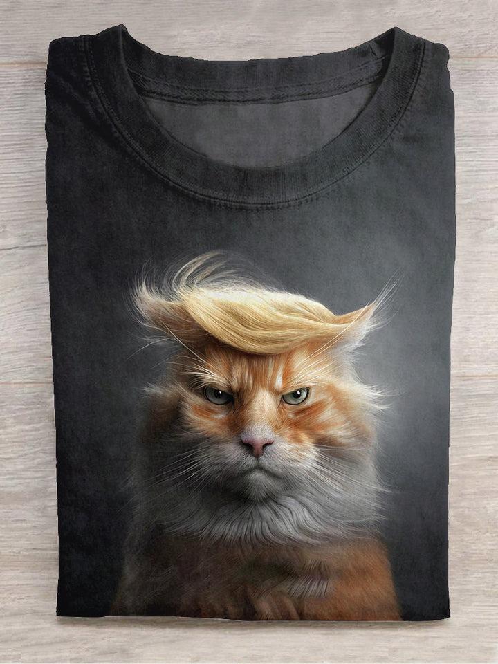 Funny Cat Art Print Casual Short Sleeve T-shirt