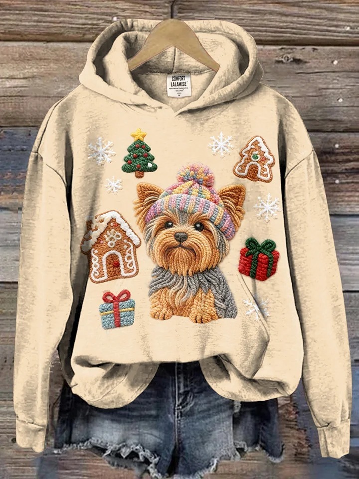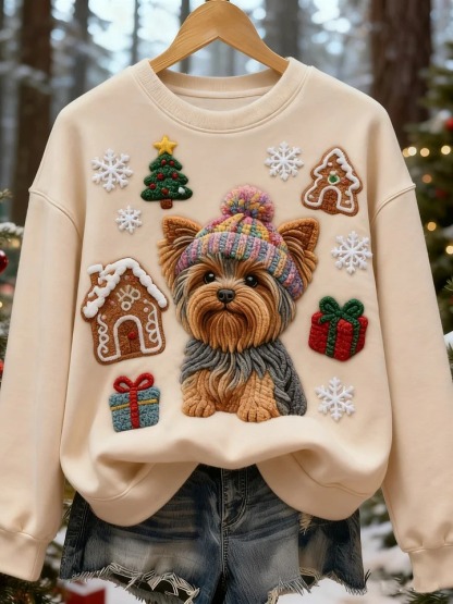 Funny Christmas Cute Dog Art Casual Cotton Plush Sweatshirt
