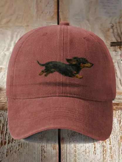 Funny Cute Running Dachshund Art Print Casual Print Hats