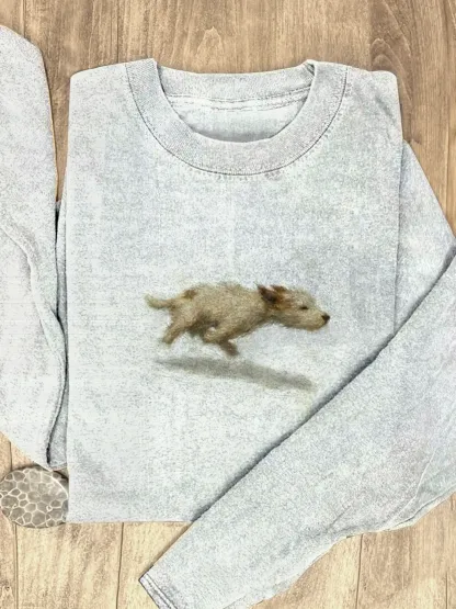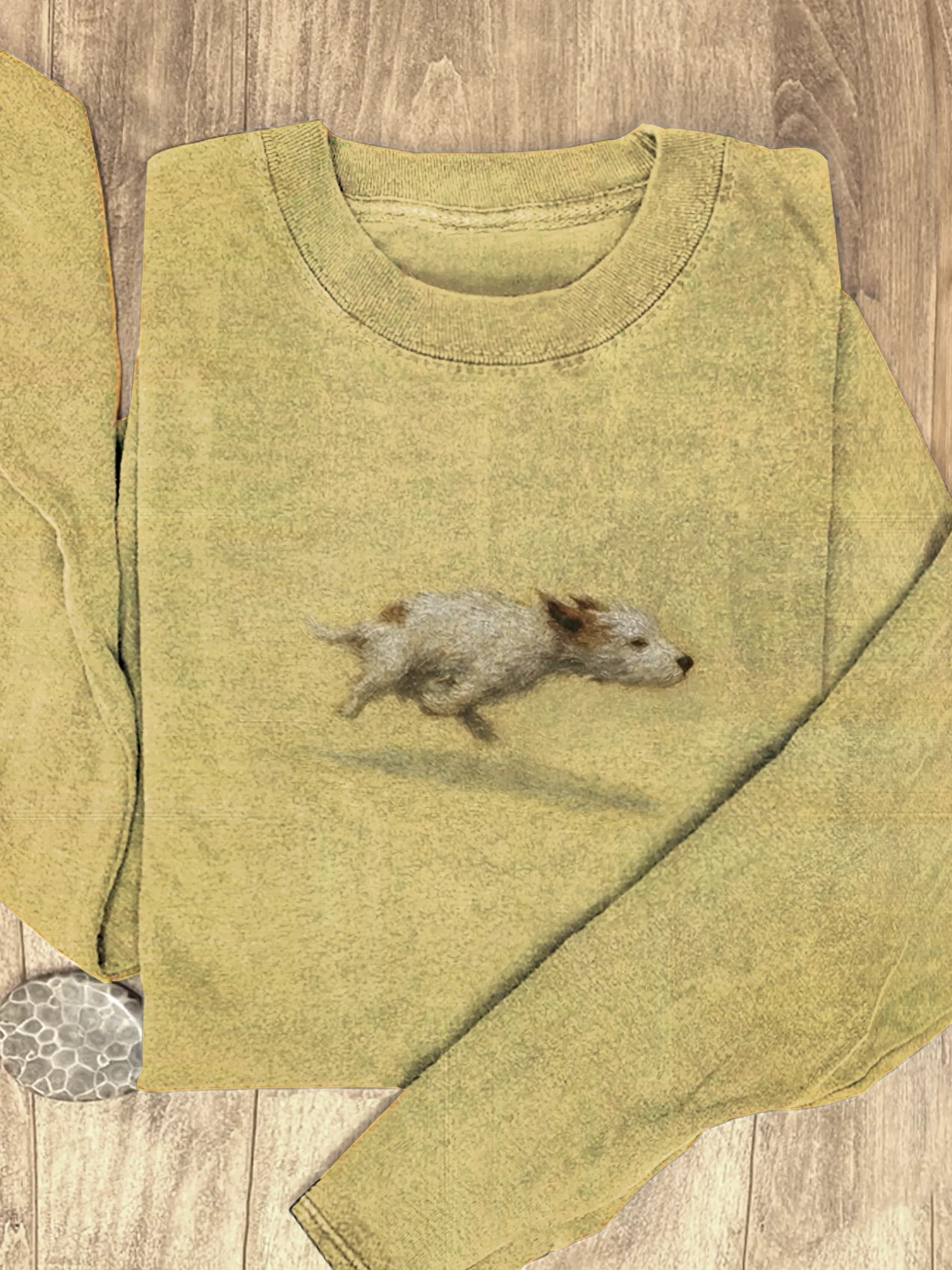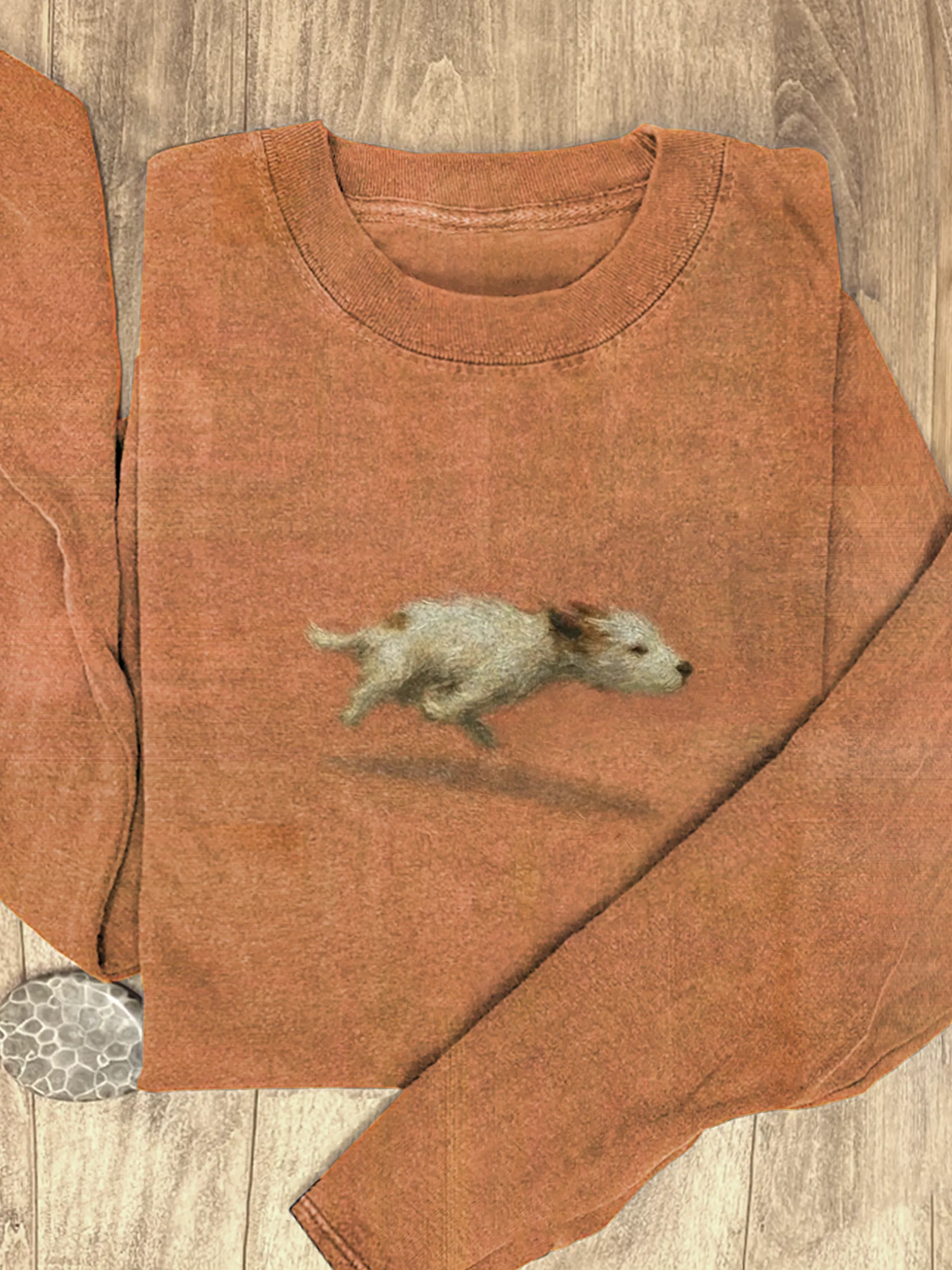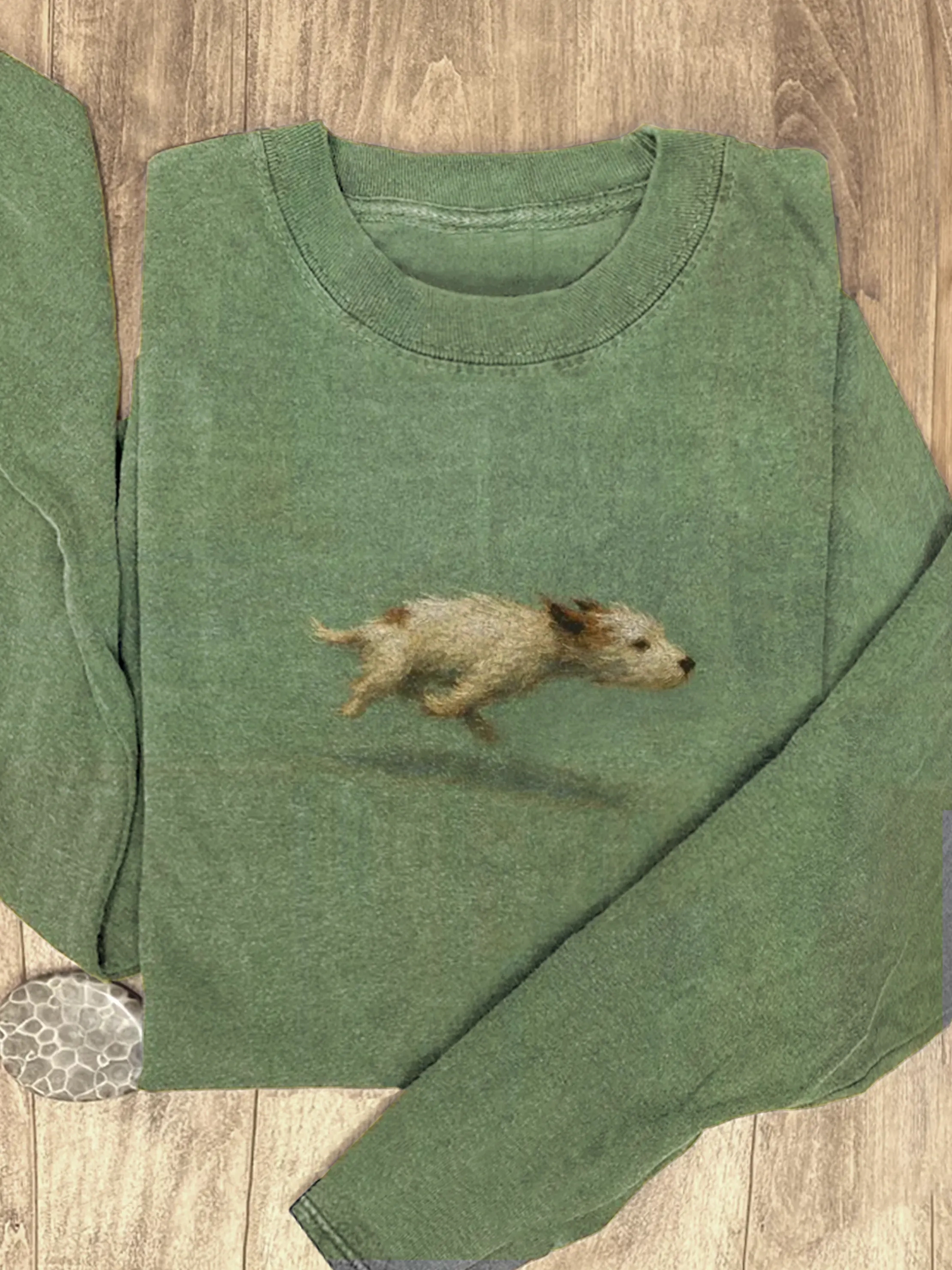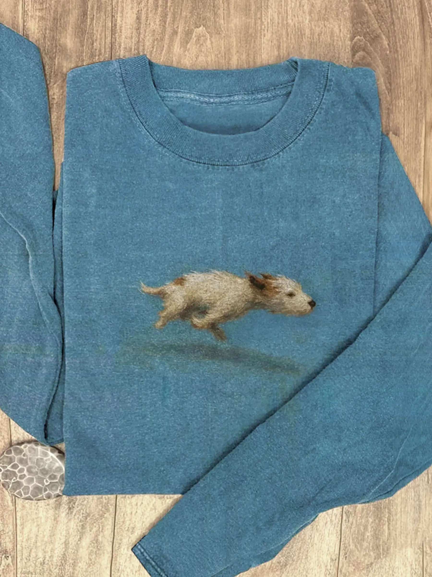 Funny Cute Running Dog Art Print Casaul Cotton Long Sleeve Shirt