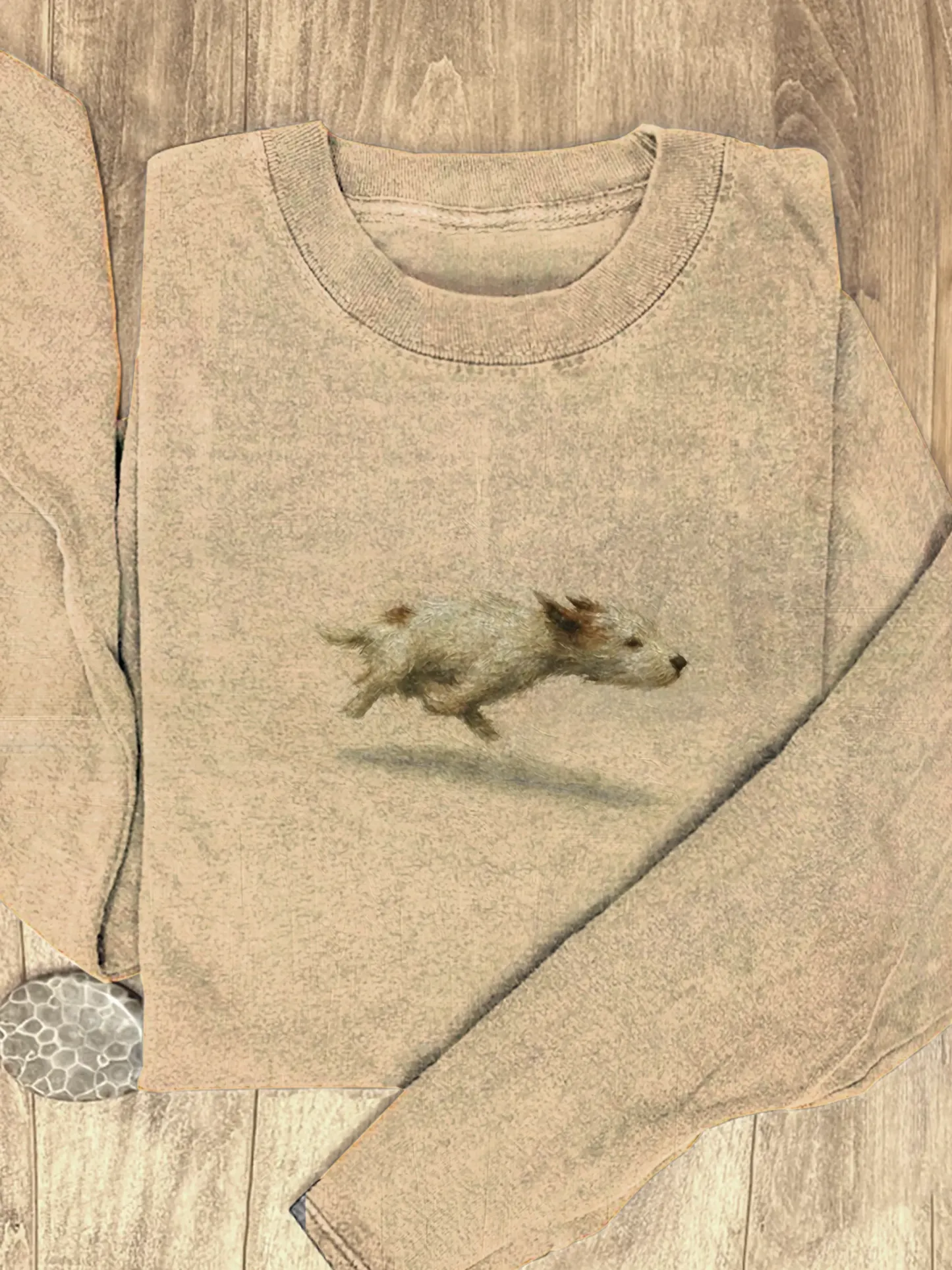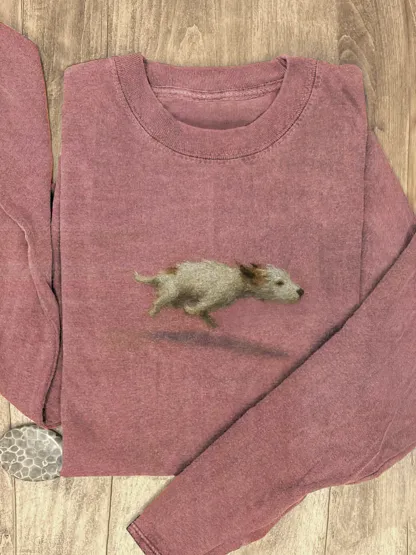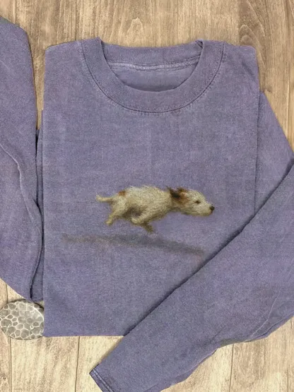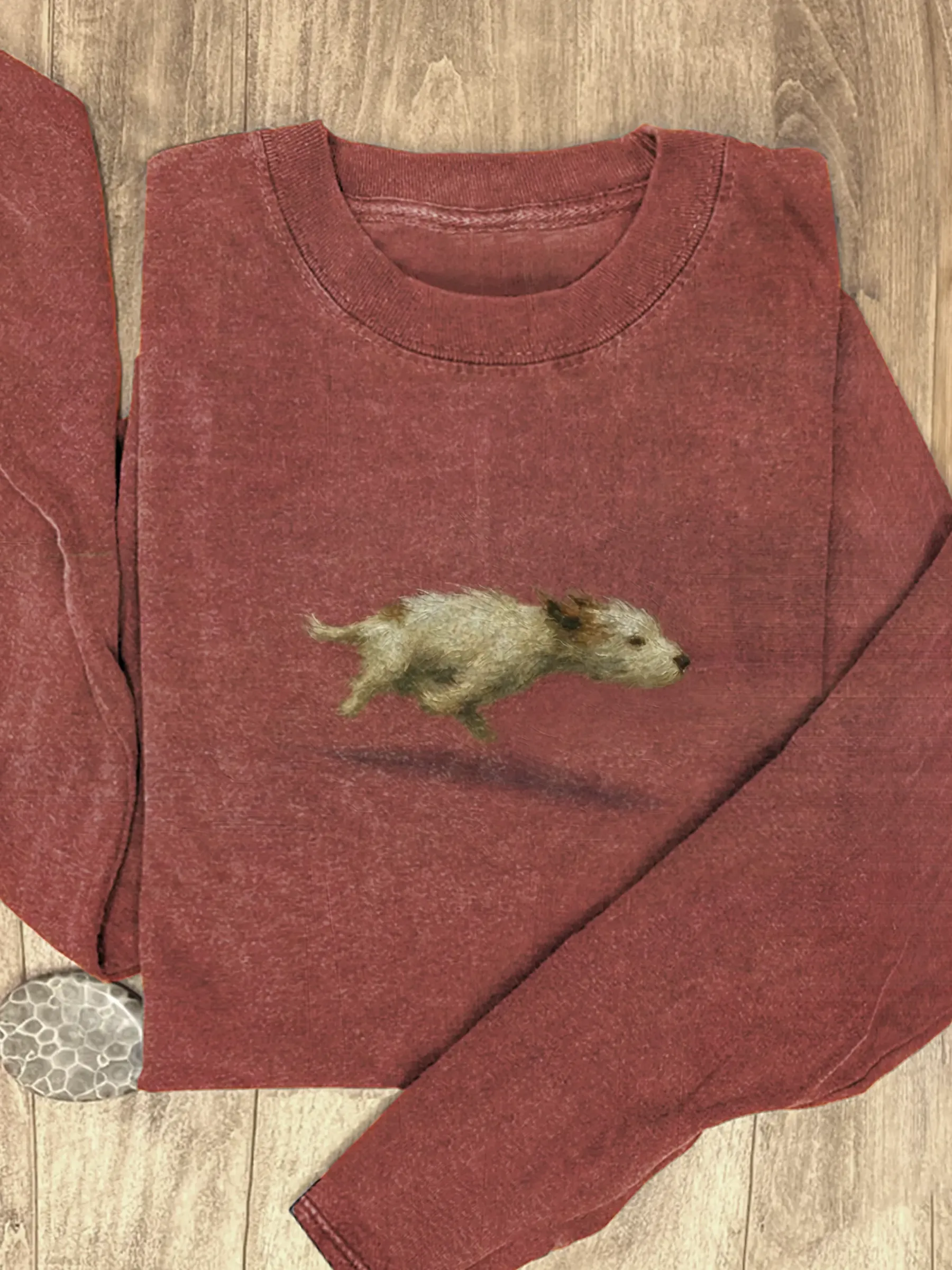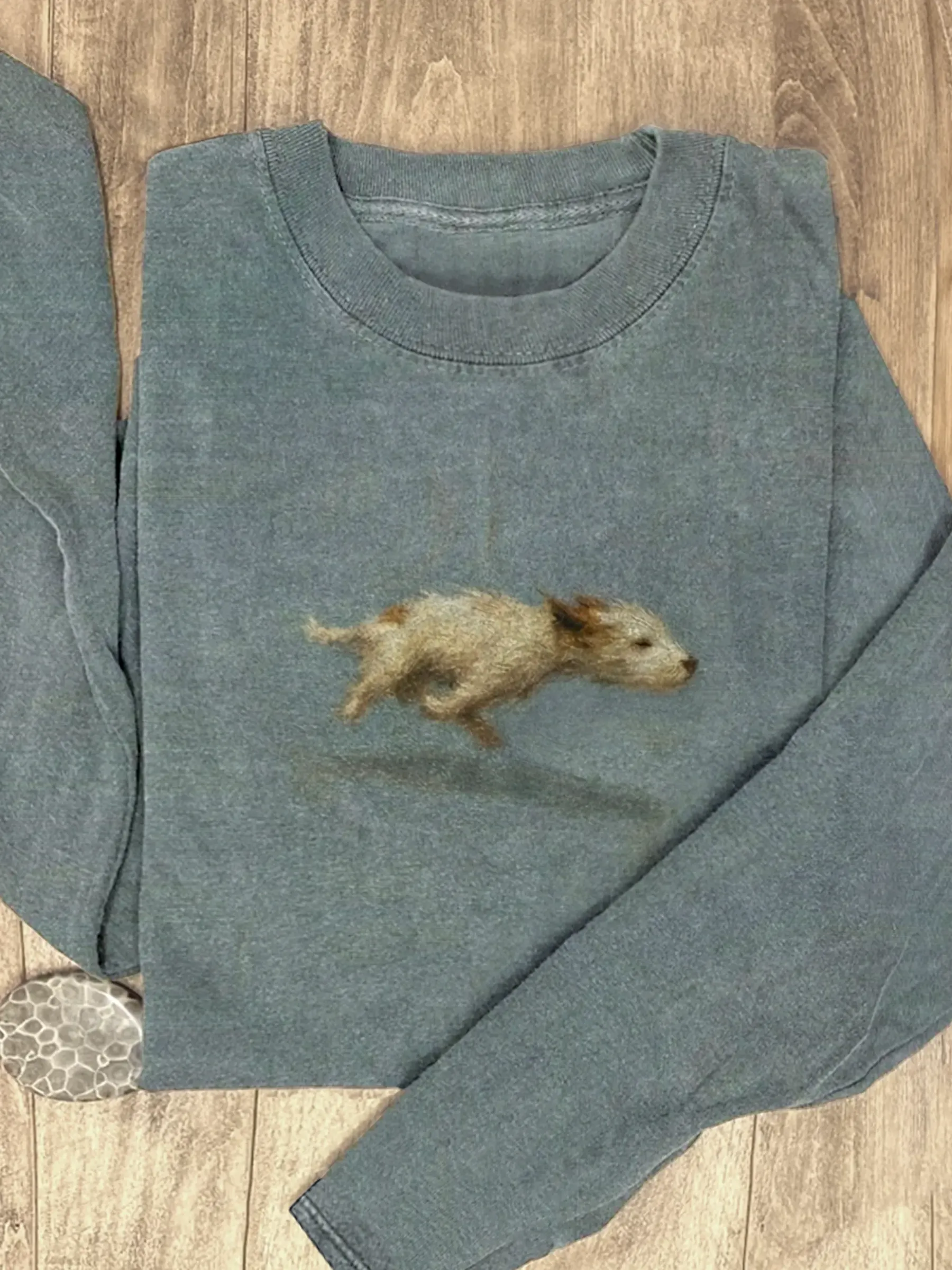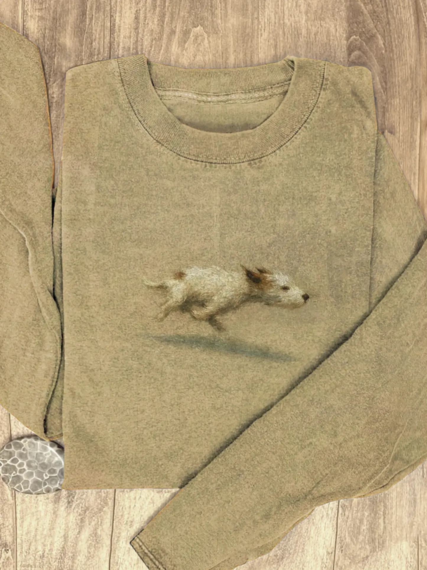 Funny Cute Running Dog Art Print Casaul Cotton Long Sleeve Shirt