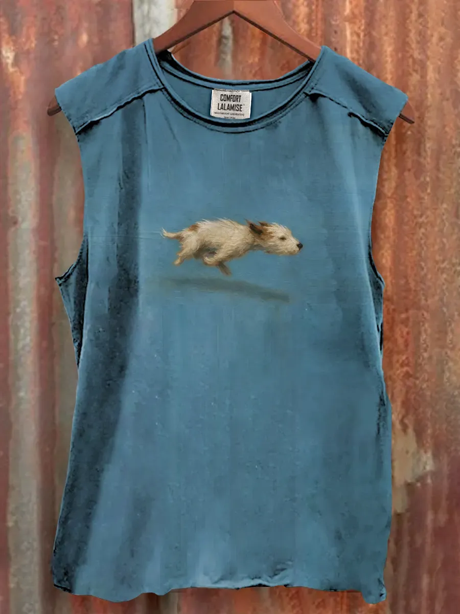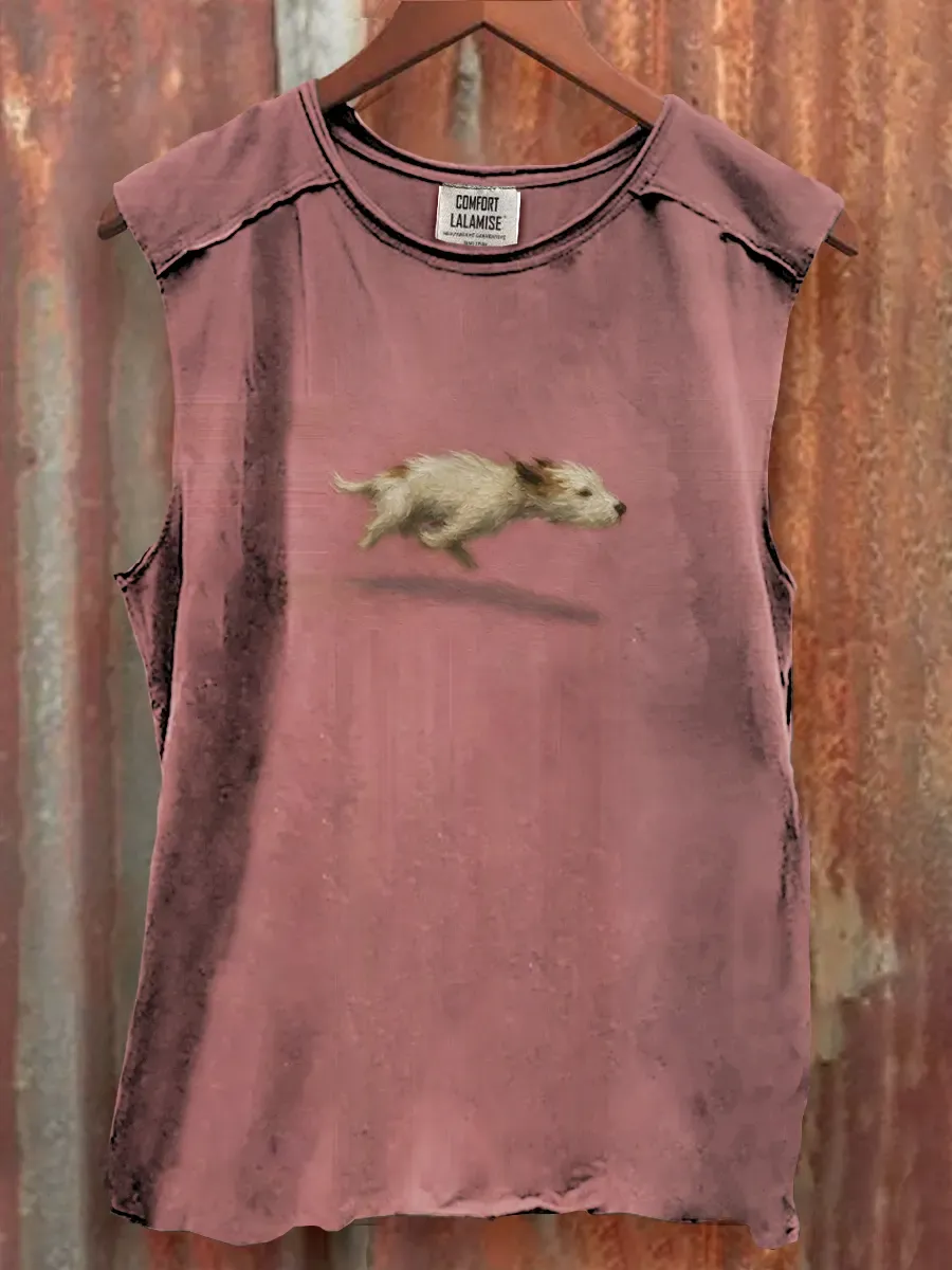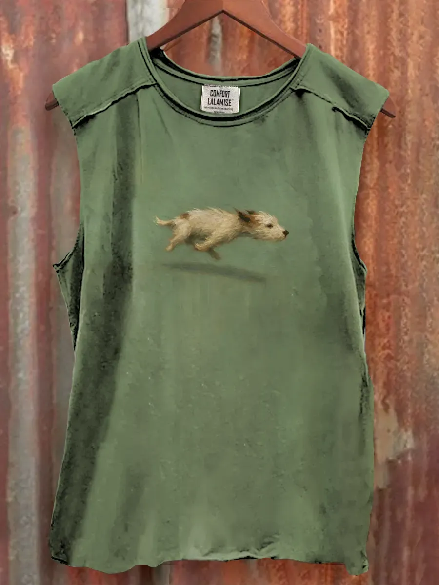 Funny Cute Running Dog Art Print Casaul Tank Top