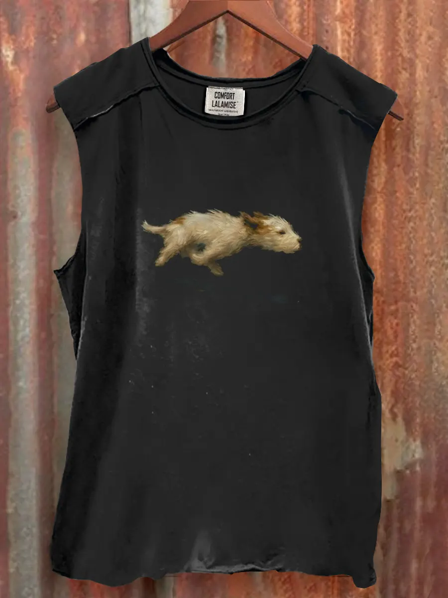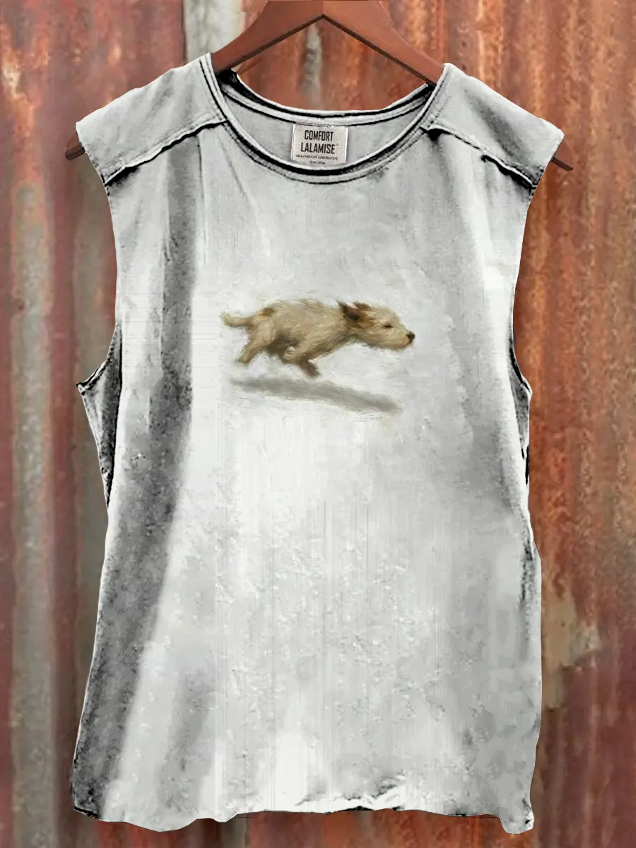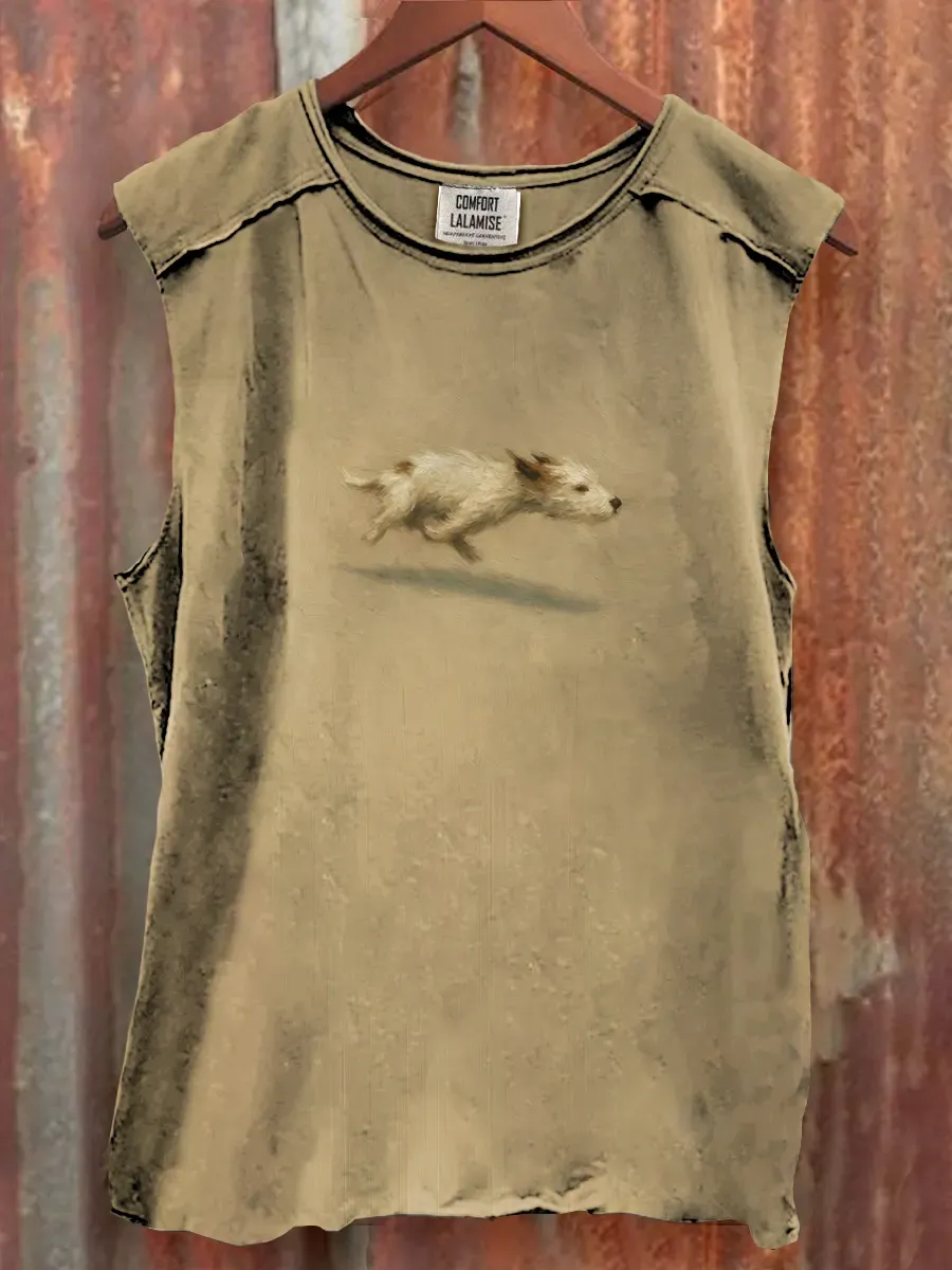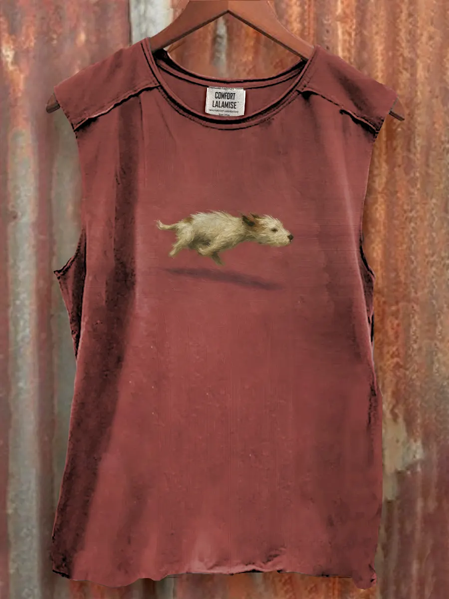 Funny Cute Running Dog Art Print Casaul Tank Top
