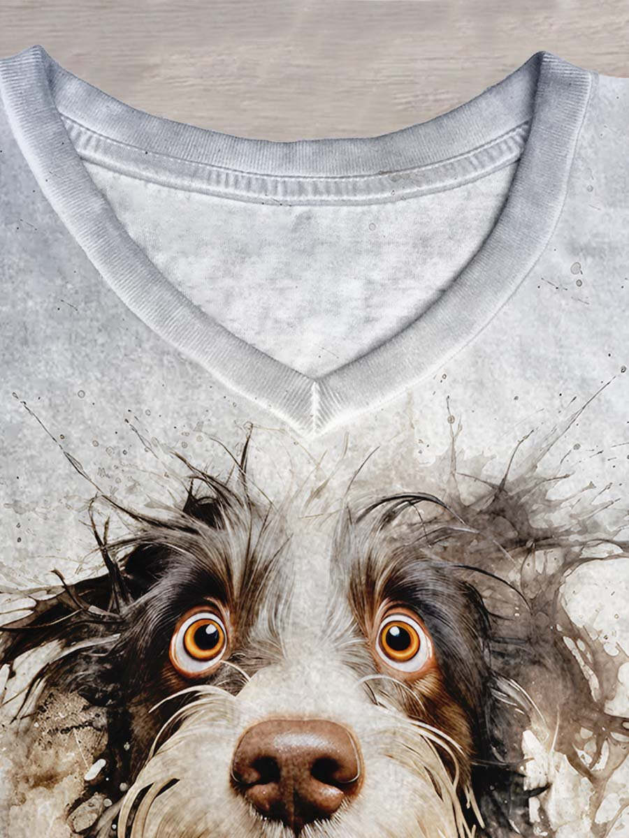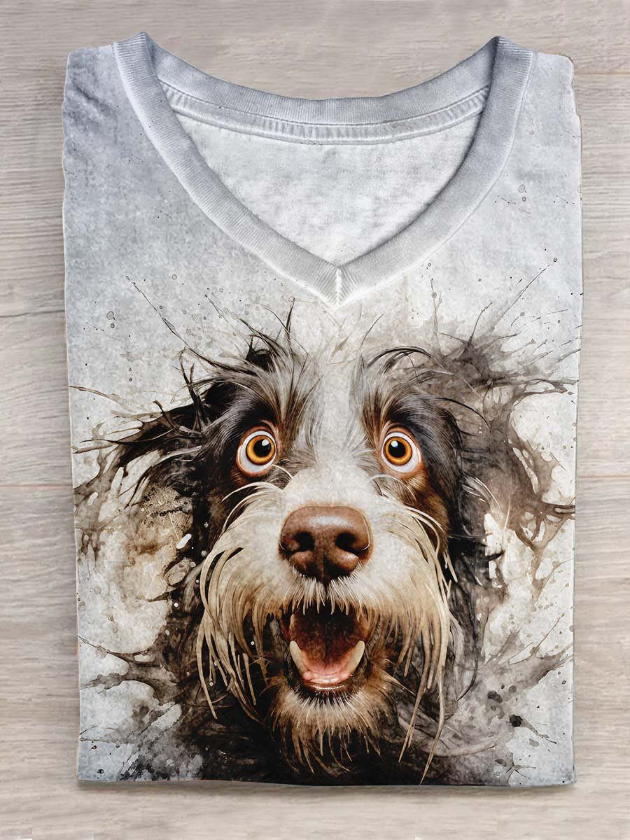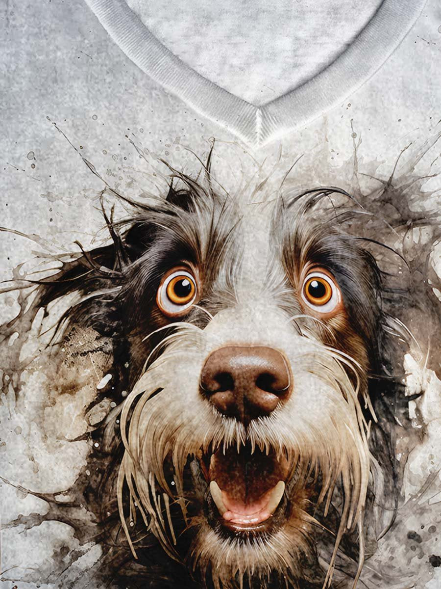 Funny Dog Ink And Watercolor Art Print Casual T-shirt