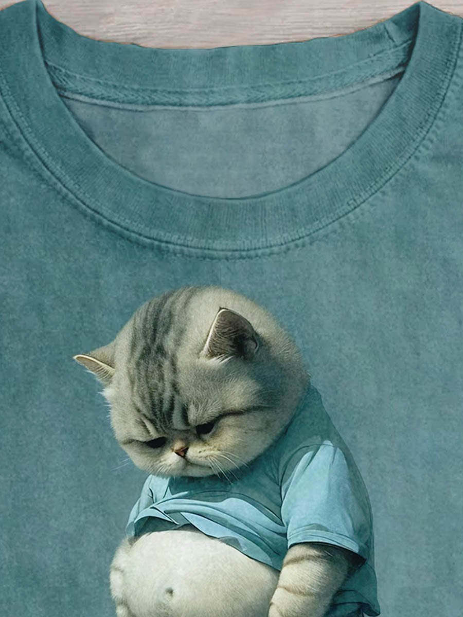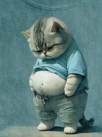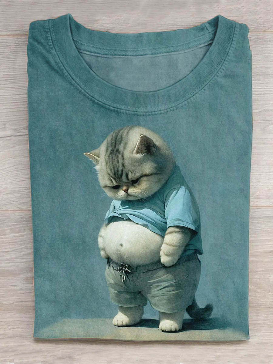 Funny Fat Cat Art Design Print T-shirt