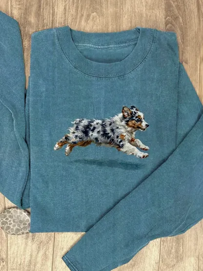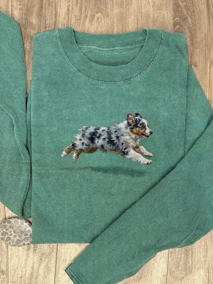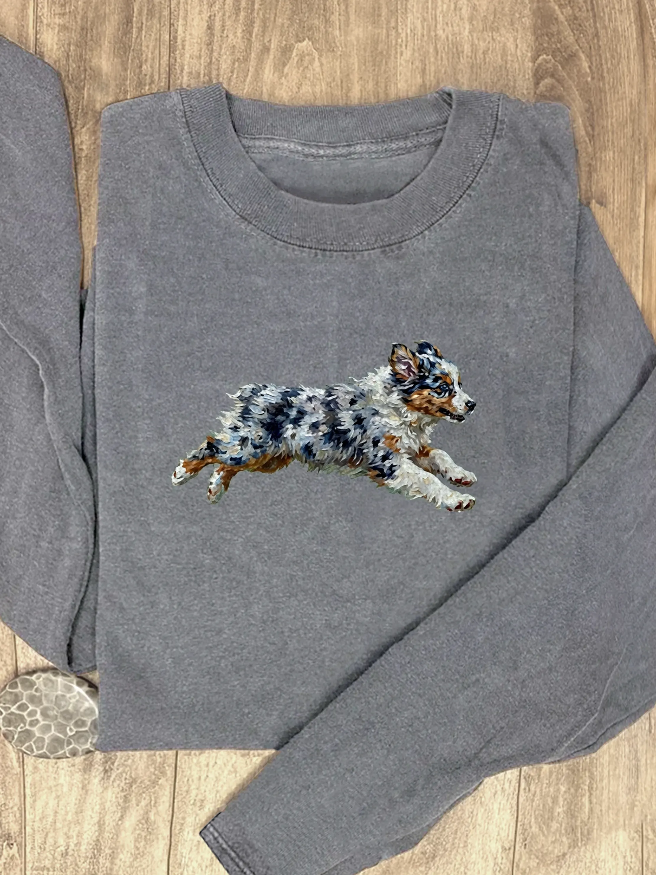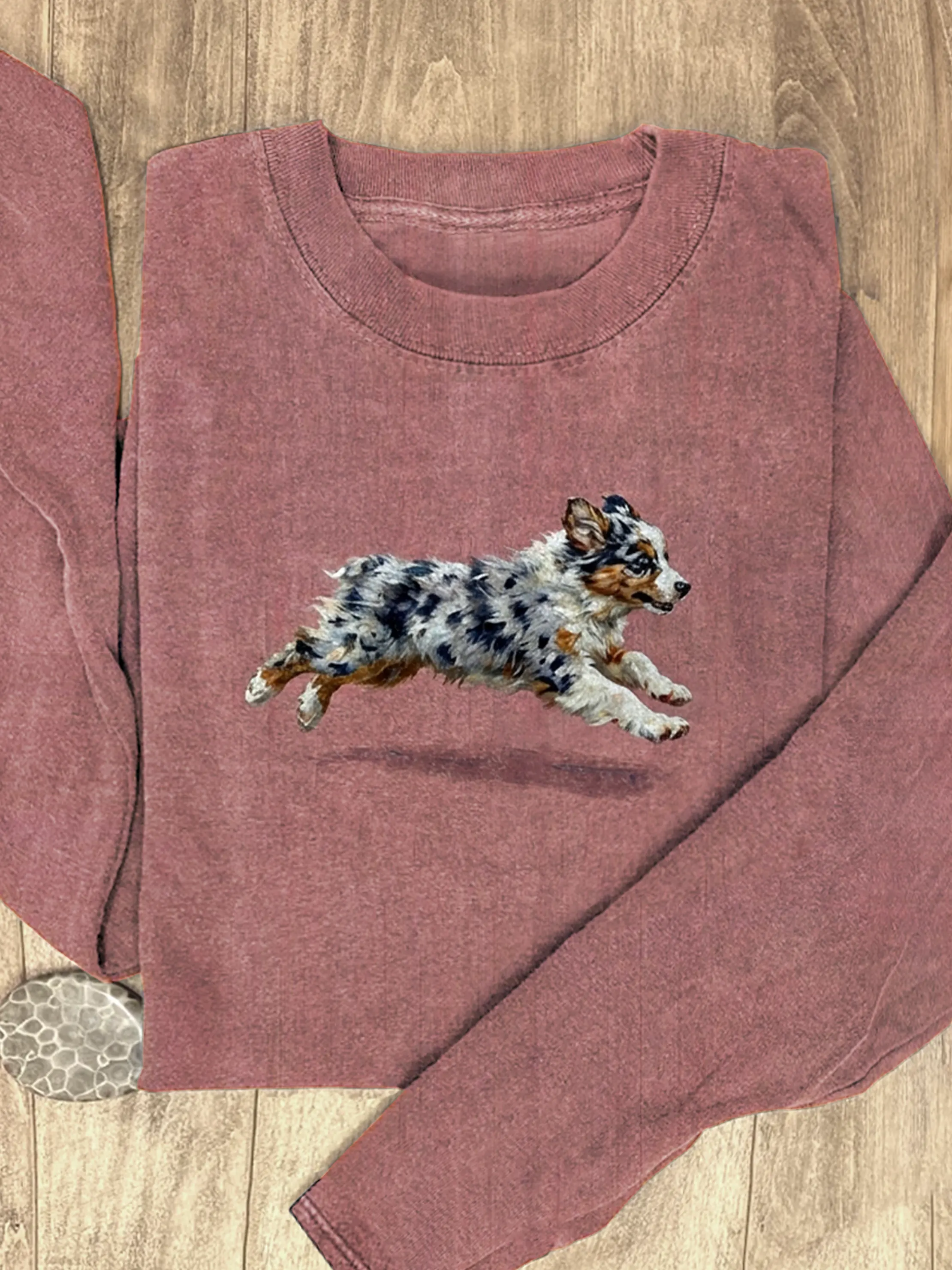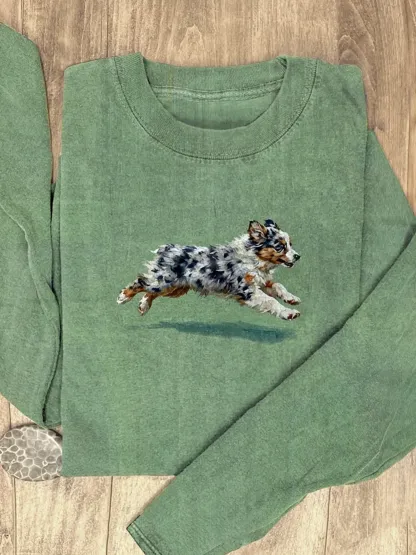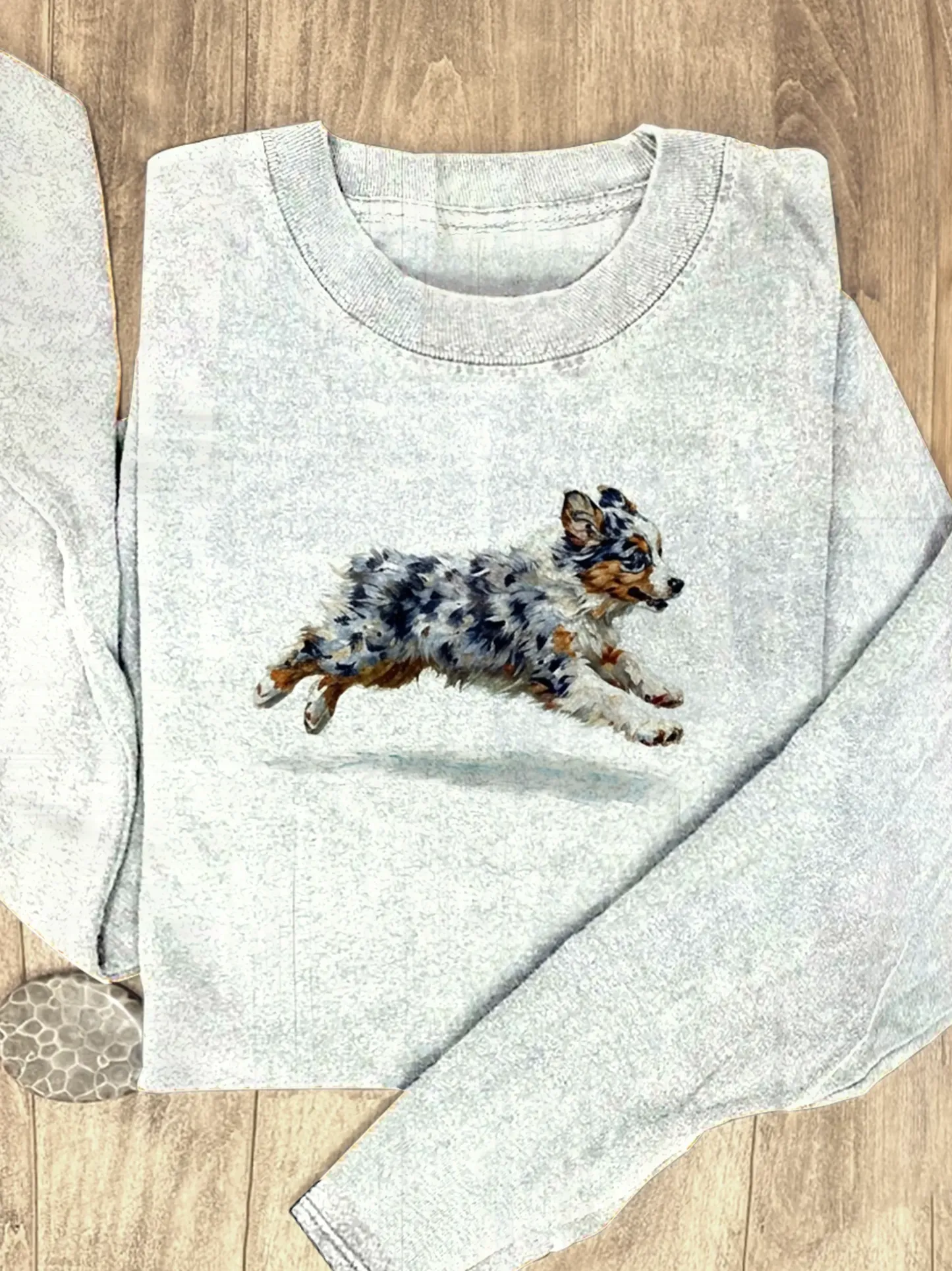 Funny Retro Cute Running Dog Art Print Casaul Cotton Long Sleeve Shirt