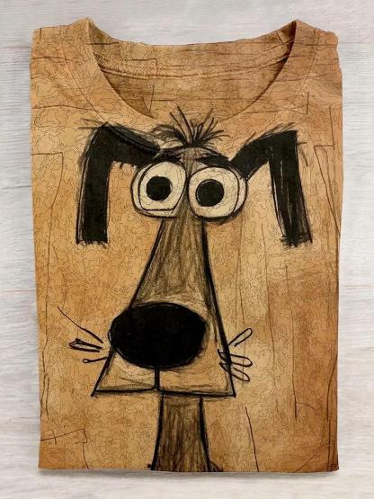Funny Retro Doodle Dog Art Print T-shirt