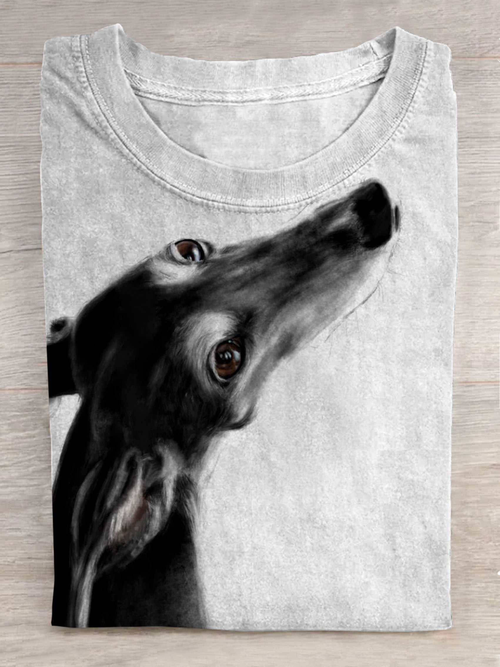 Greyhound Cute Dog Lover Art Casual Print T-shirt