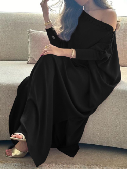 H-Line Loose Buttoned Solid Color Maxi Dresses