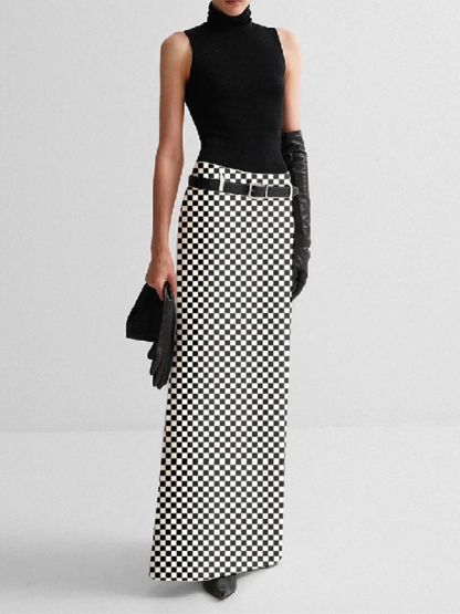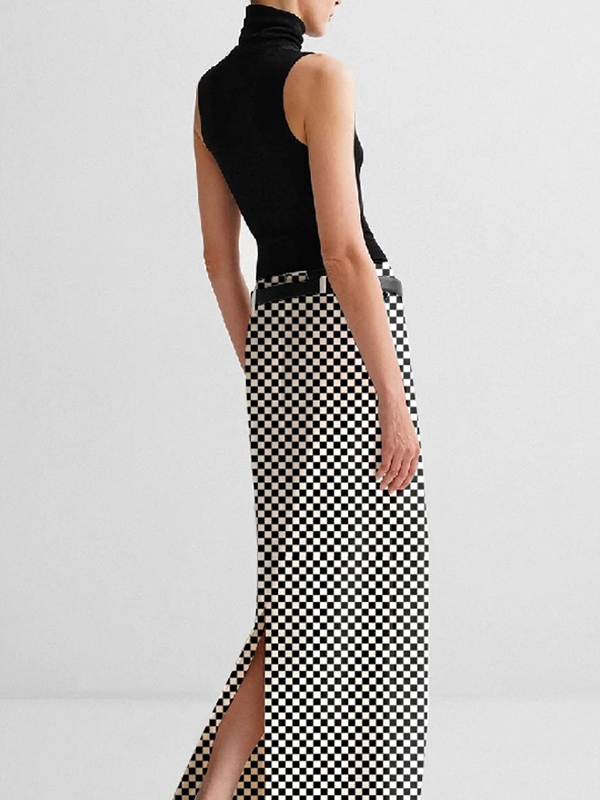 H-Line No Belt Plaid Printed Split-Back Skirts Bottoms