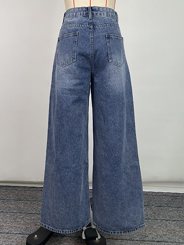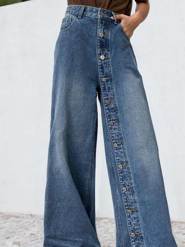 High Waisted Loose Buttoned Pockets Jean Pants Bottoms