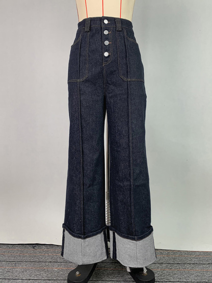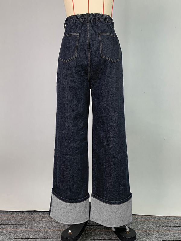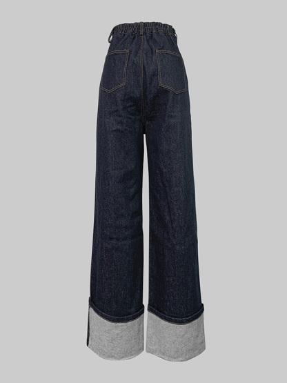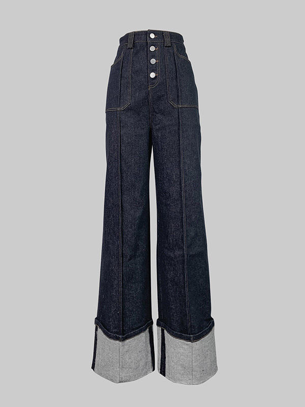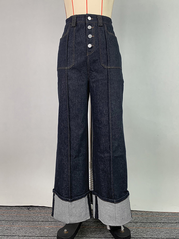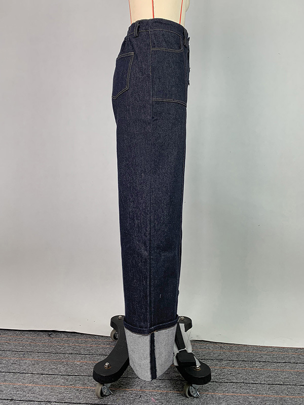 High Waisted Straight Leg Contrast Color Split-Joint Jean Pants Bottoms