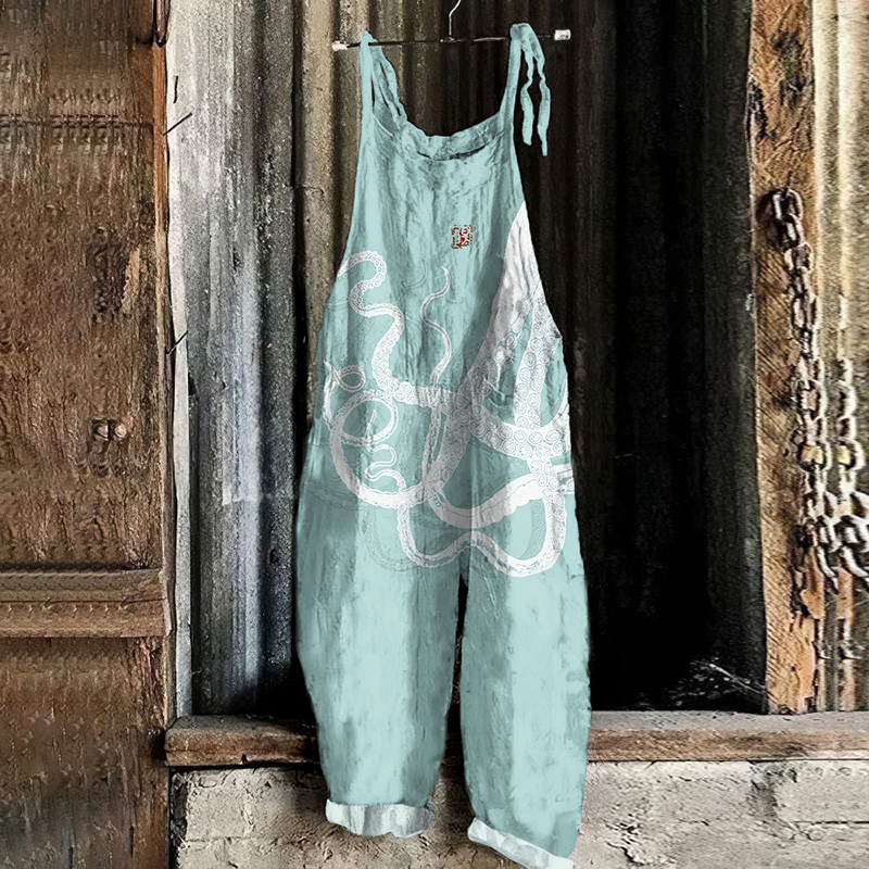 Japanese Octopus Art Print Loose Casual Jumpsuit