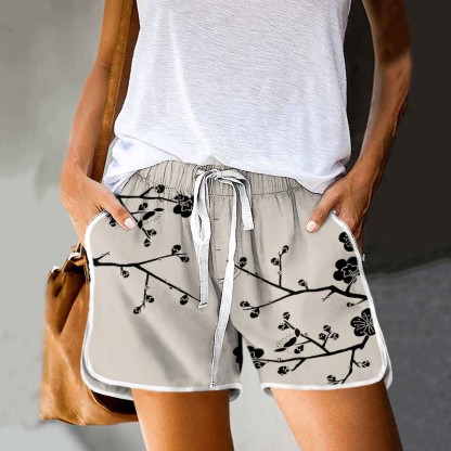 Japanese Women's Sakura Art Ink And Wash Drawstring Pocket Shorts