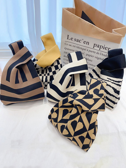Knitting Checkerboard Zebra-Stripe Striped Bags Accessories Handbags