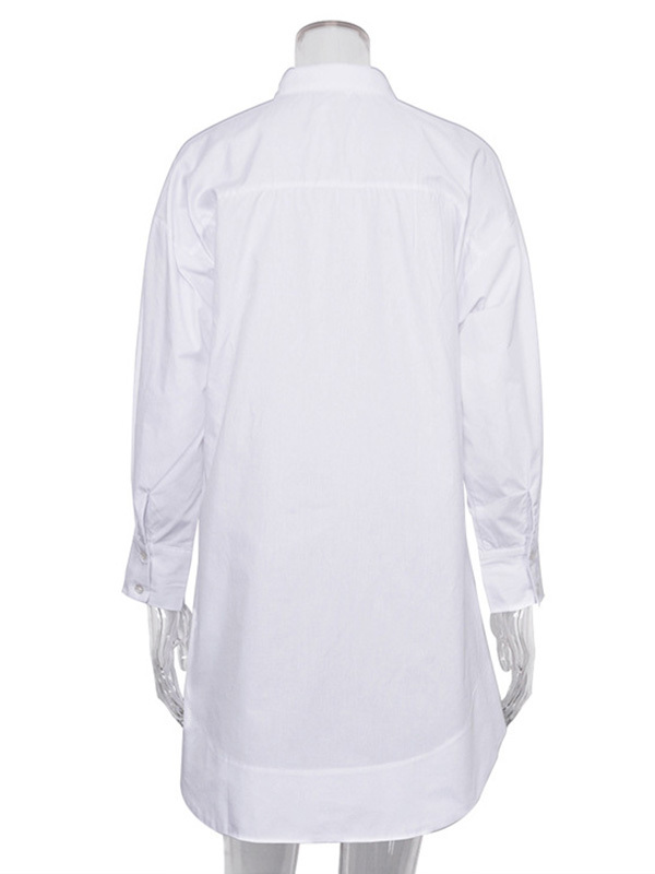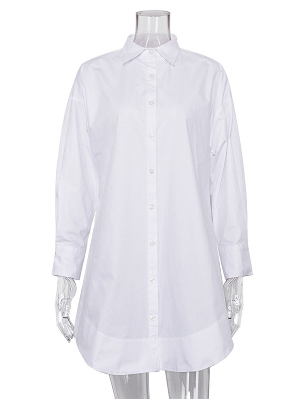 Leisure Fashion Loose Long Sleeves Solid Color Lapel Collar Shirt Dresses