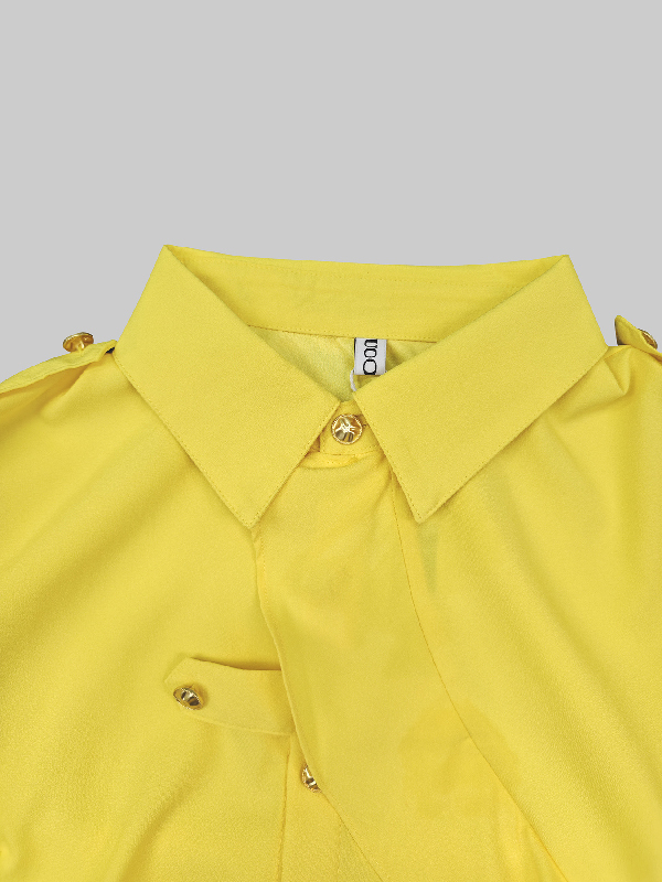 Long Sleeves Loose Asymmetric Buttoned Lapel Blouses&Shirts Tops