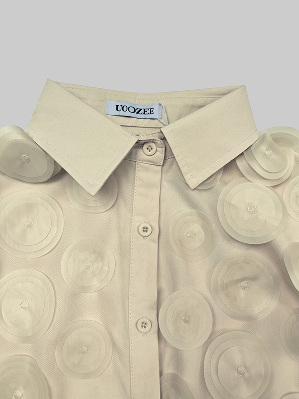 Long Sleeves Loose Buttoned Mesh Polka-Dot Split-Joint Lapel Blouses&Shirts Tops