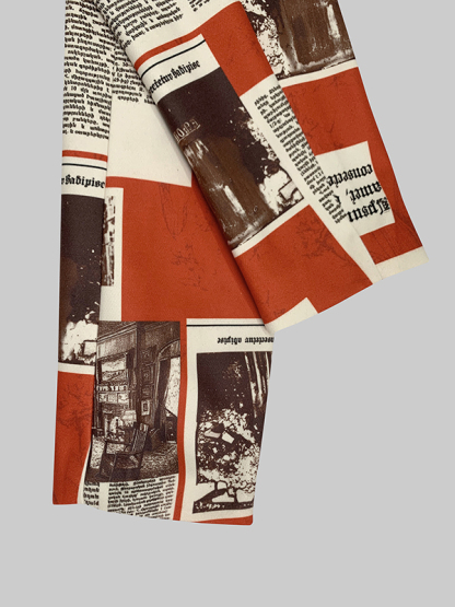 Long Sleeves Loose Buttoned Newspaper Print Pockets Split-Joint Notched Collar Blazer Outerwear