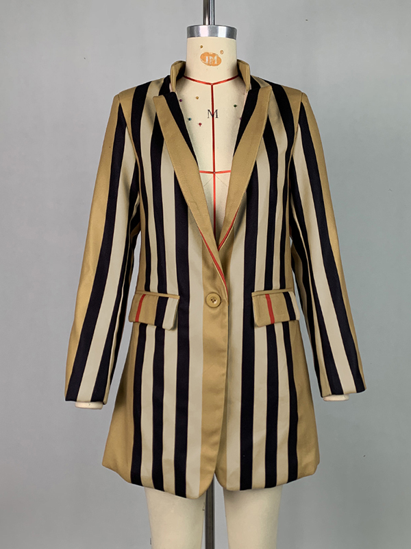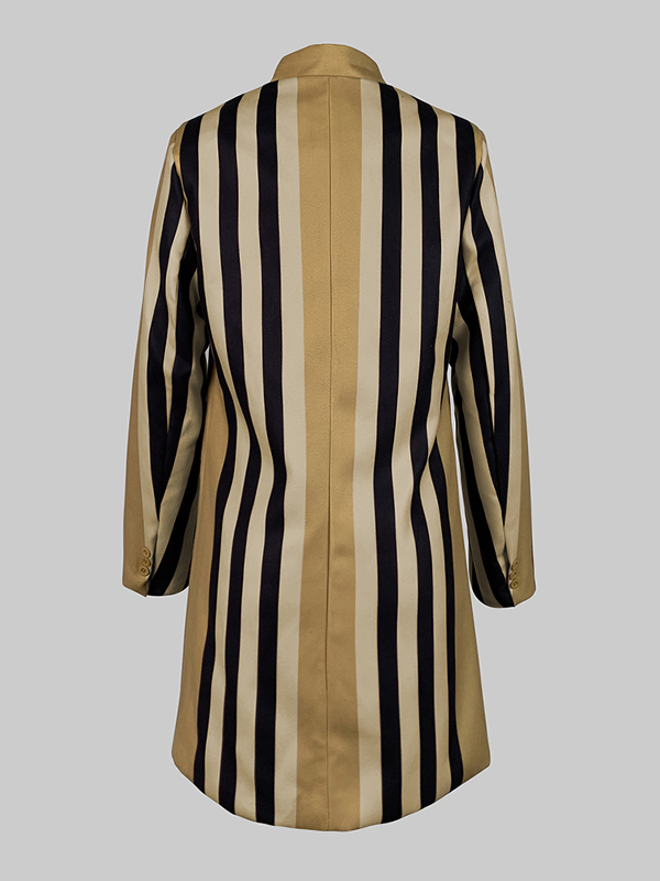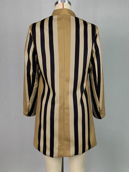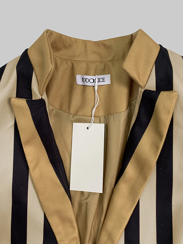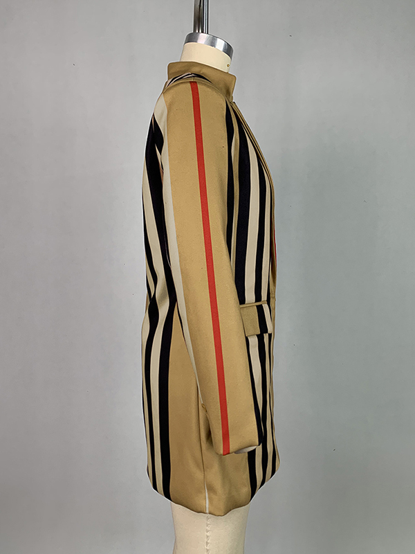 Long Sleeves Loose Buttoned Split-Joint Striped Stand Collar Woolen Coat