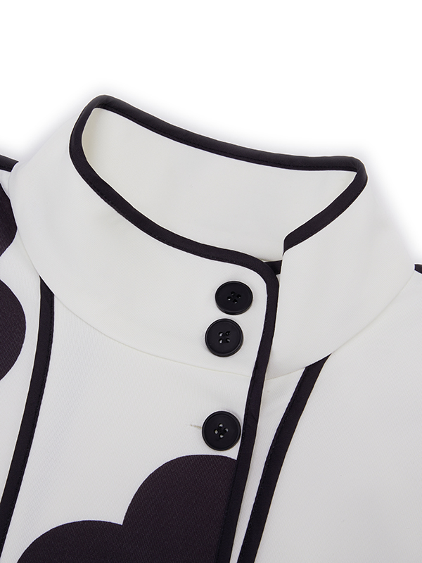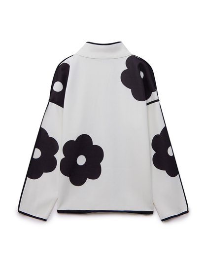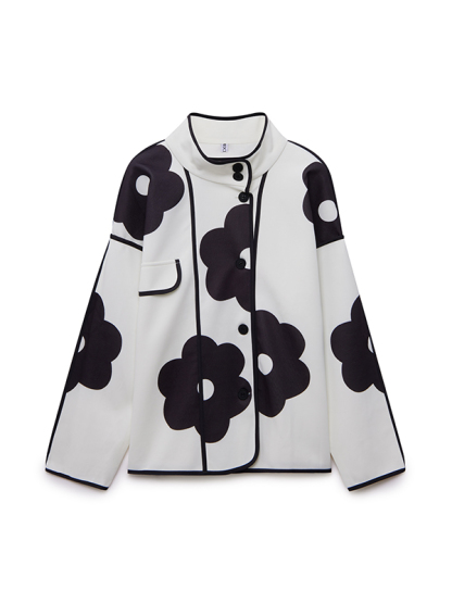 Long Sleeves Loose Contrast Color Flower Print Split-Joint Stand Collar Jackets Outerwear