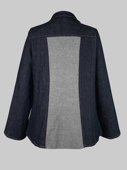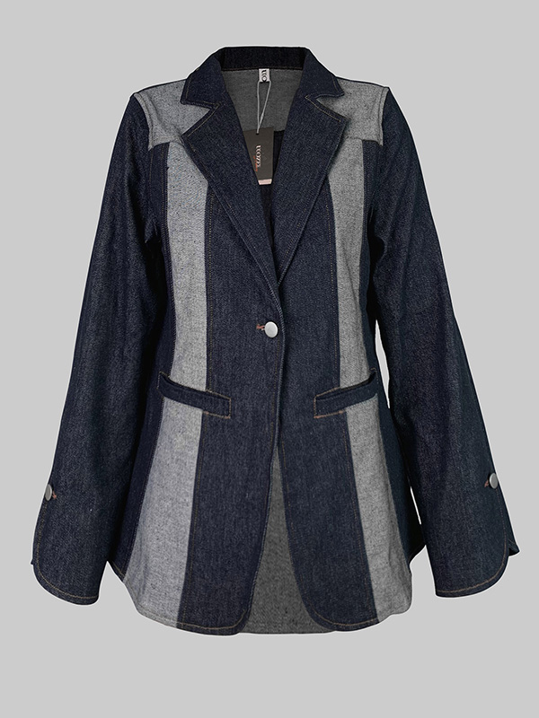 Long Sleeves Loose Contrast Color Split-Joint Deep V-Neck Jackets Outerwear