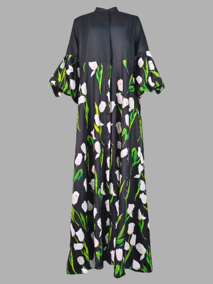Long Sleeves Loose Floral Floral Printed Pleated Split-Joint Stand Collar Trench Coats
