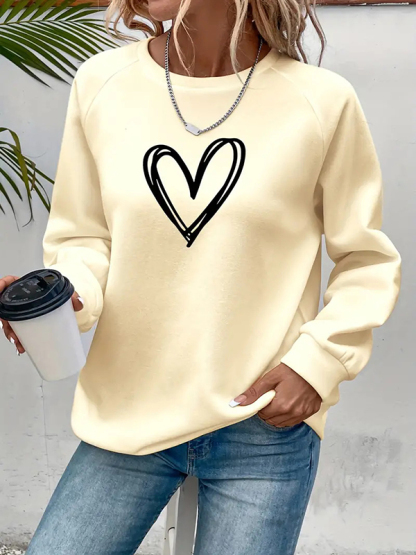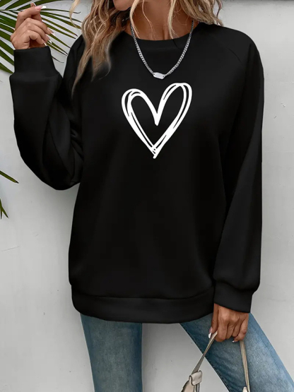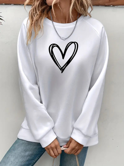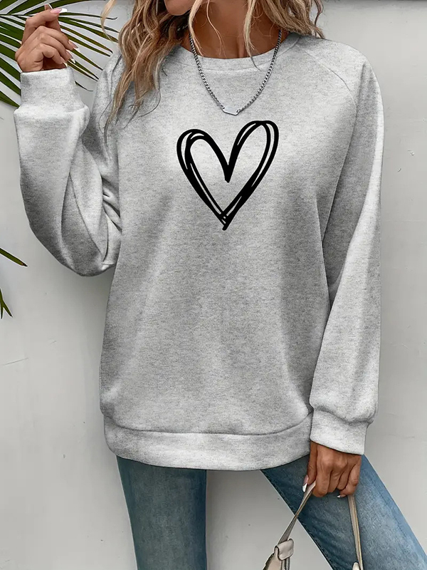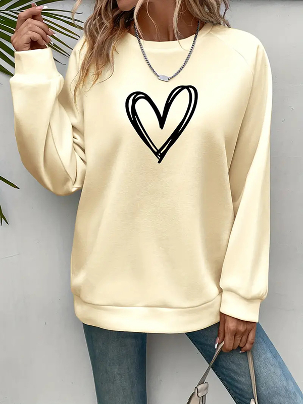 Long Sleeves Loose Heart Print Split-Joint Round-Neck Sweatshirt Tops