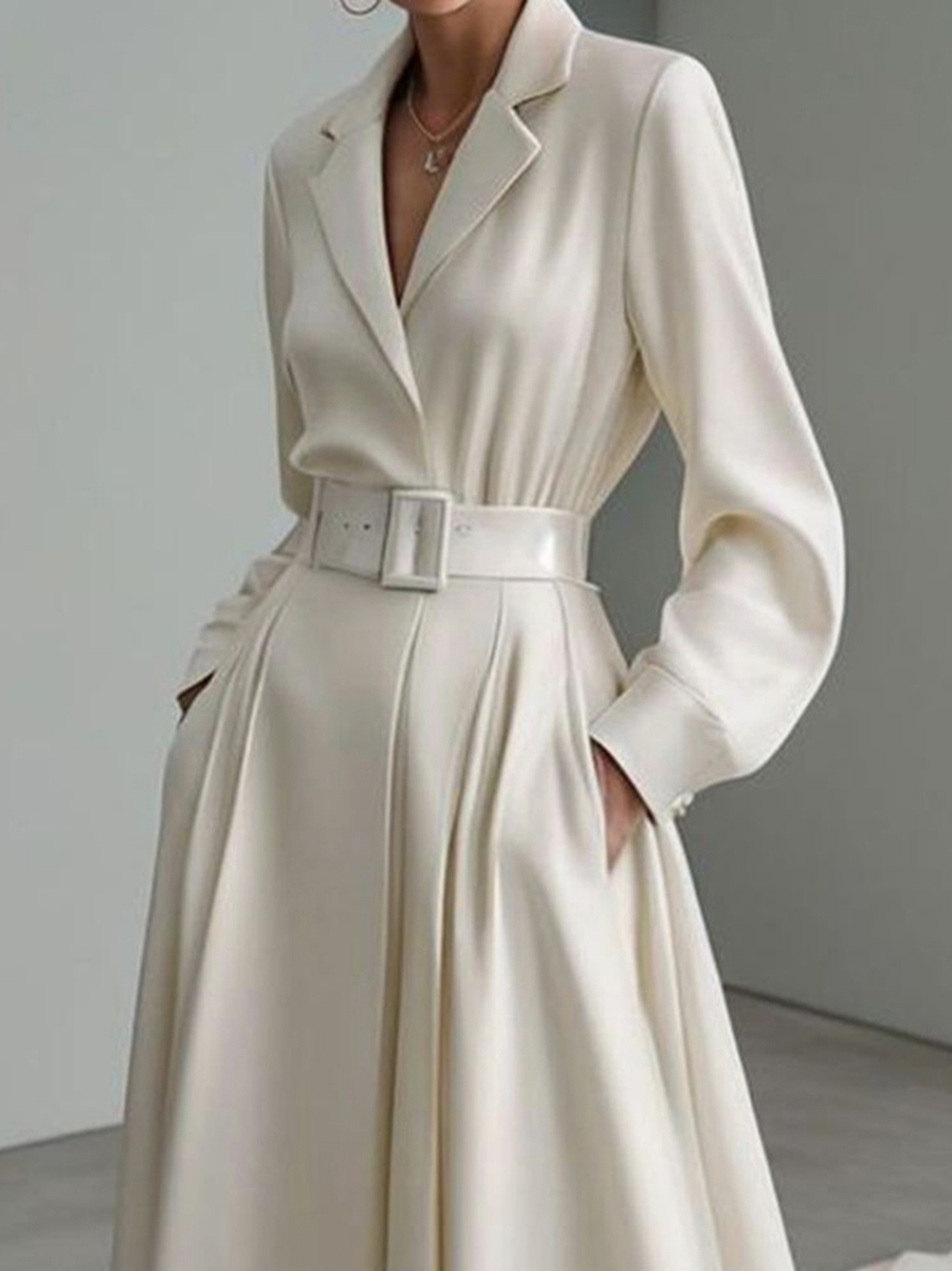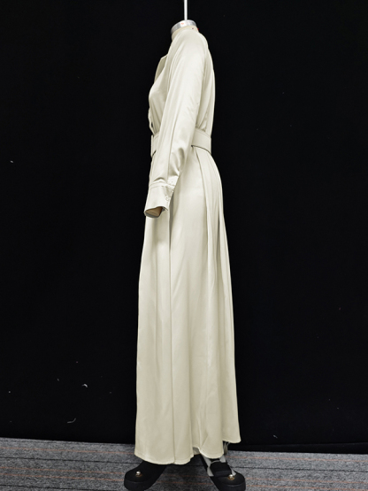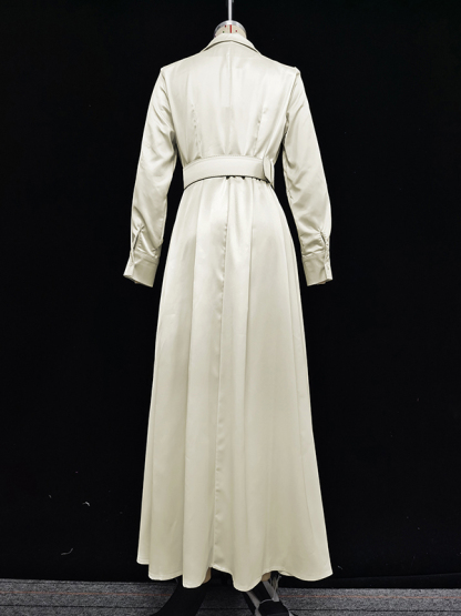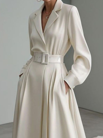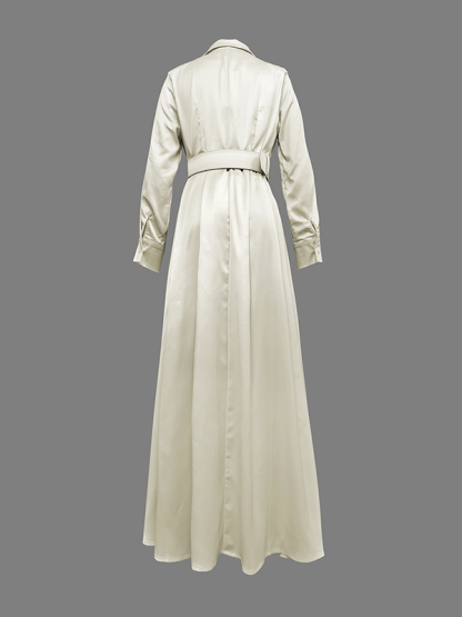 Long Sleeves Loose No Belt Solid Color Notched Collar Maxi Dresses