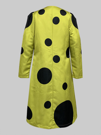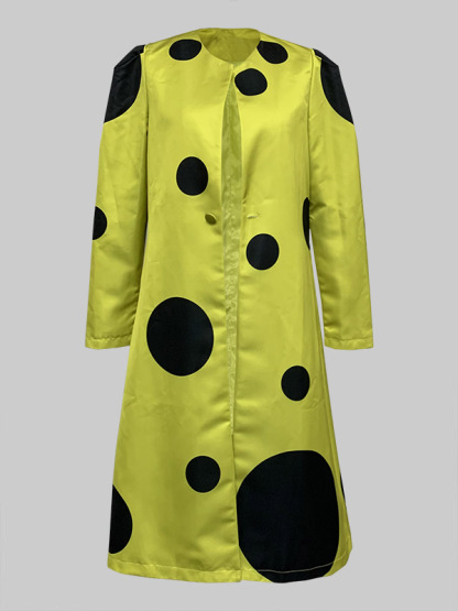 Long Sleeves Loose Pleated Polka-Dot Split-Joint Round-Neck Outerwear