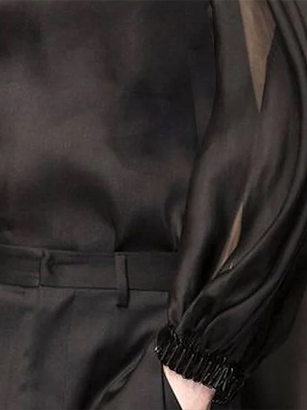 Long Sleeves Loose See-Through Solid Color Mock Neck Blouses&Shirts Tops