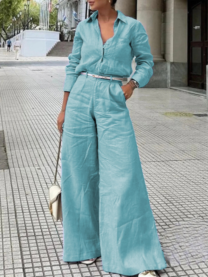 Long Sleeves Loose Solid Color Split-Joint Lapel Blouses&Shirts Tops