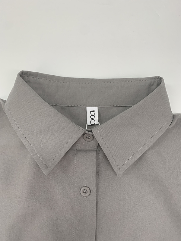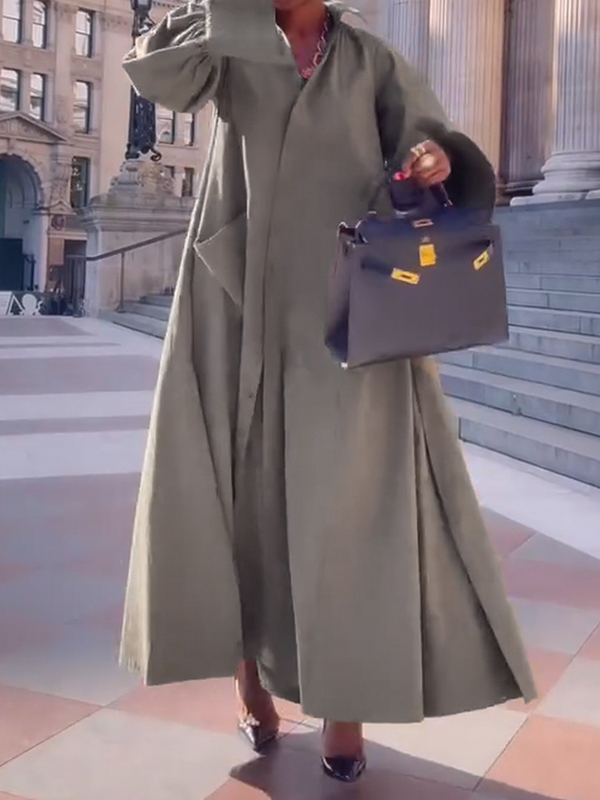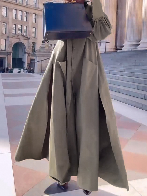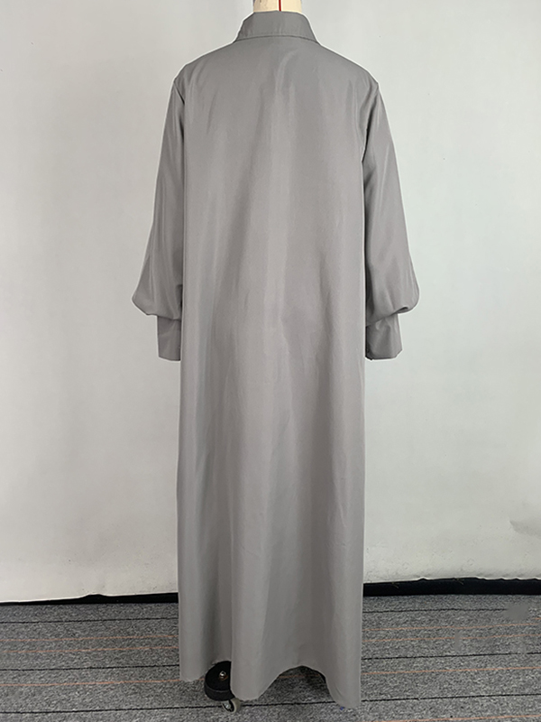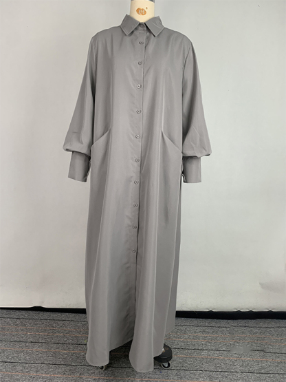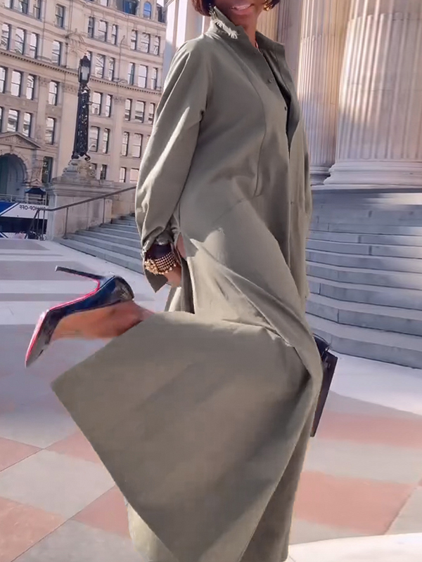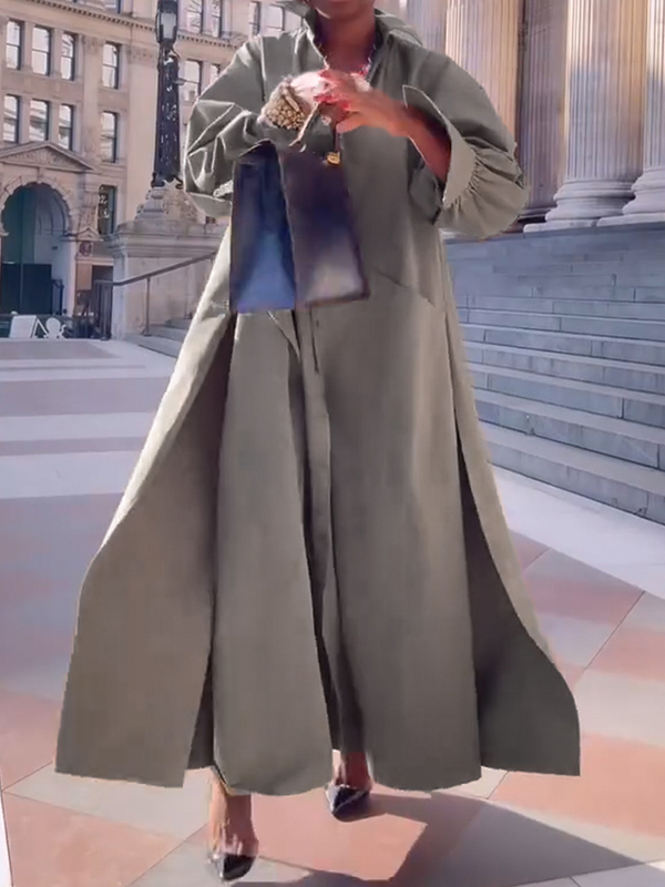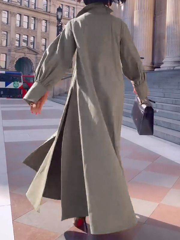 Long Sleeves Loose Solid Color Split-Joint Split-Side Lapel Maxi Dresses Shirt Dress