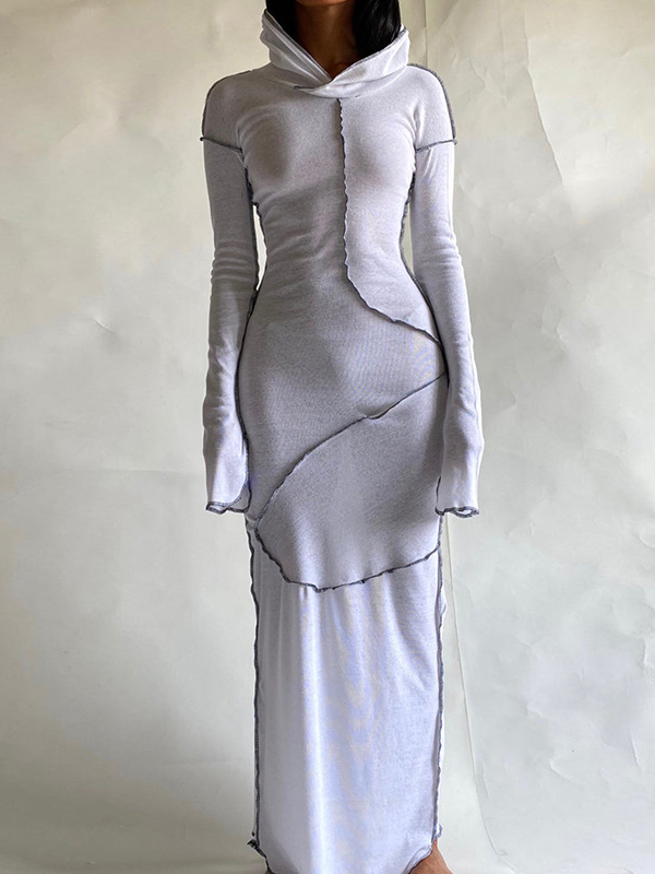 Long Sleeves Plus Size Solid Color Split-Joint Hooded Maxi Dresses