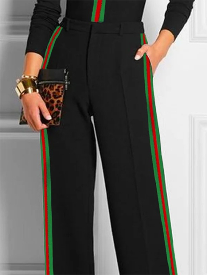 Long Sleeves Skinny Contrast Color Striped Casual Pants Bottoms Pants Trousers