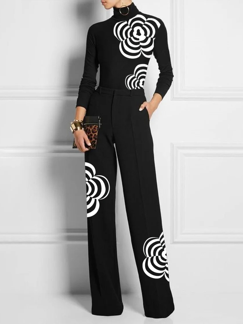 Long Sleeves Skinny Flower Print High Neck T-Shirts Tops