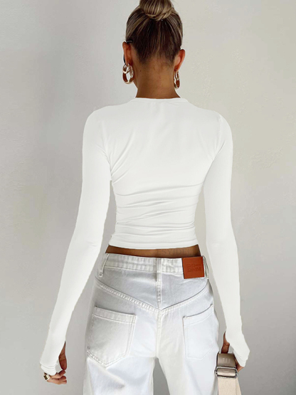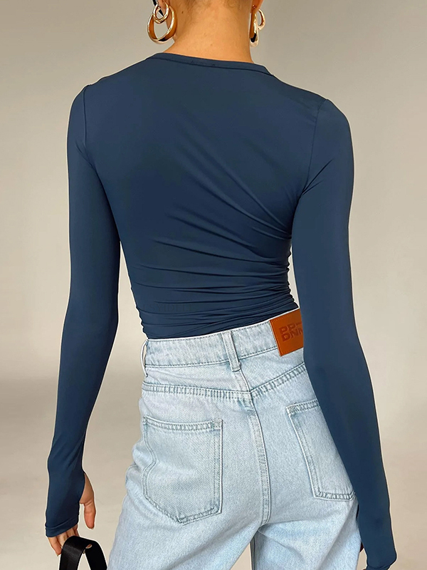 Long Sleeves Skinny Hollow Solid Color Round-Neck T-Shirts Tops