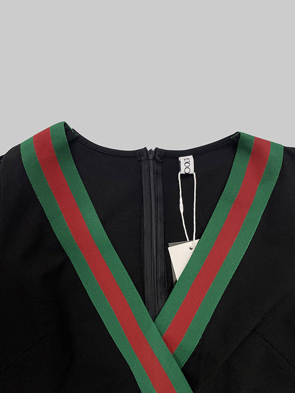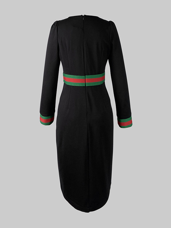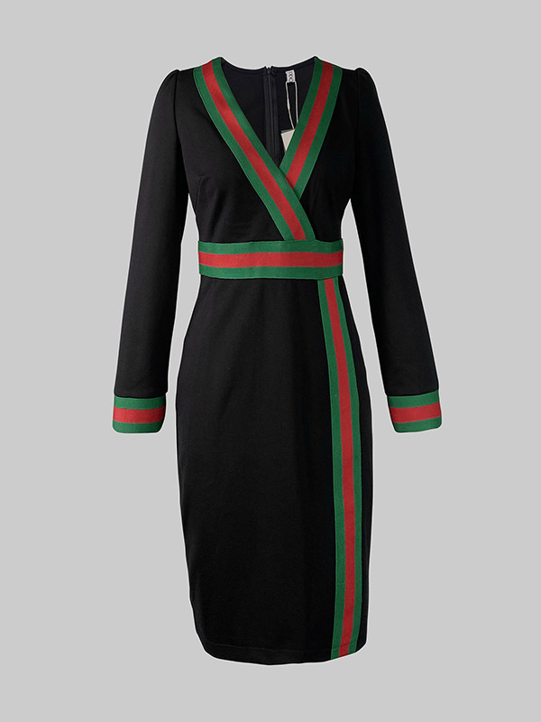 Long Sleeves Striped Deep V-Neck Mini Dresses