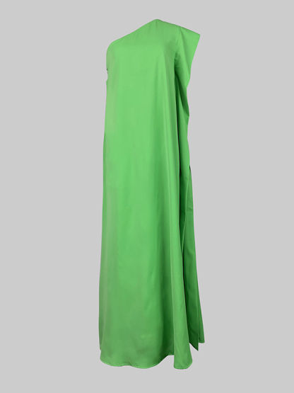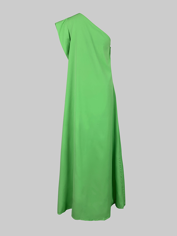 Loose Asymmetric Solid Color Split-Joint One-Shoulder Maxi Dresses