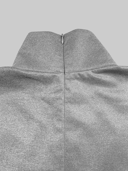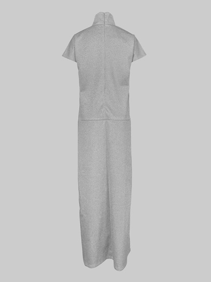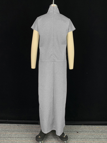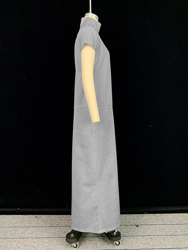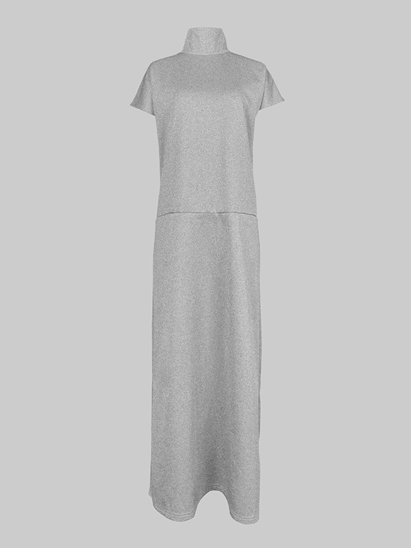 Loose Short Sleeves Solid Color Split-Joint High Neck Maxi Dresses