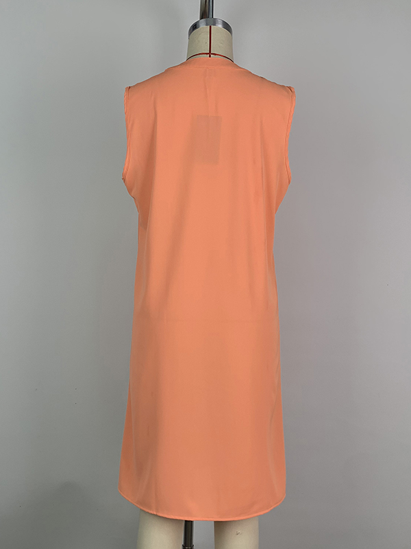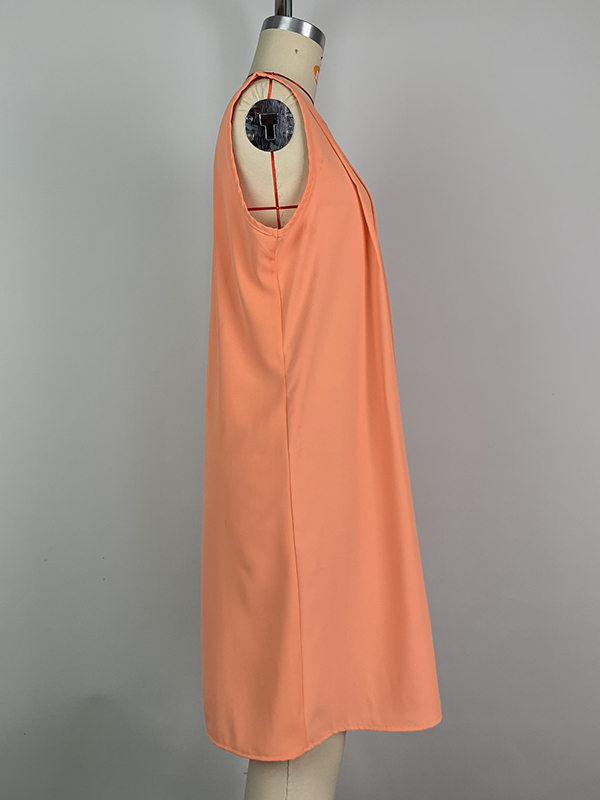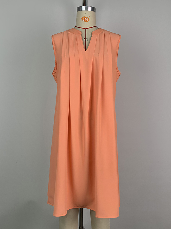 Loose Sleeveless Pleated Solid Color V-neck Mini Dresses