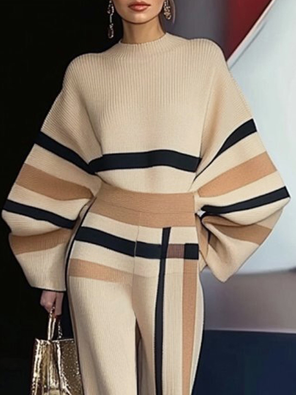 Loose Striped Round-Neck Pullovers Sweater Tops