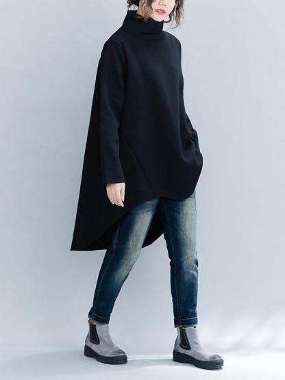 Loose Turtleneck Cropped Sweatshirt