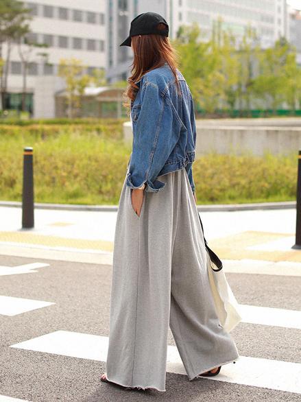 Loose Urban Gray Wide Leg Elastic Waist Pants