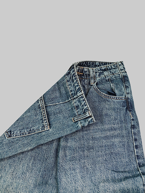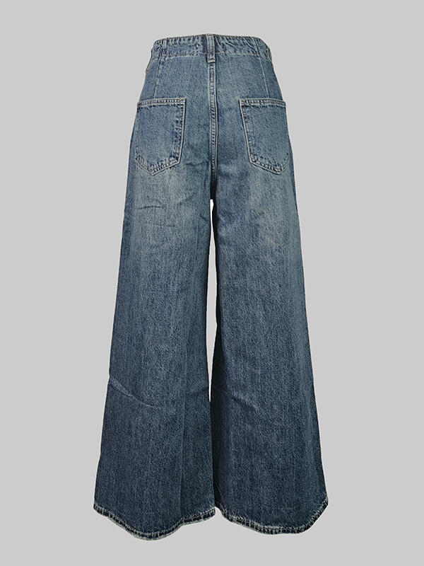 Loose Wide Leg Buttoned Fringed Pockets Jean Pants Bottoms
