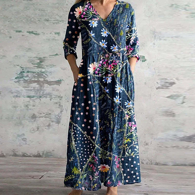 MARISOL – MIDNIGHT BLOOM PATCHWORK Maxi Dress