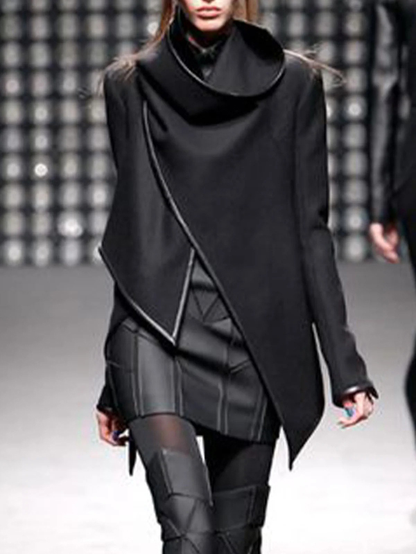Original Asymmetric Split-Joint High-Neck Woolen Coat